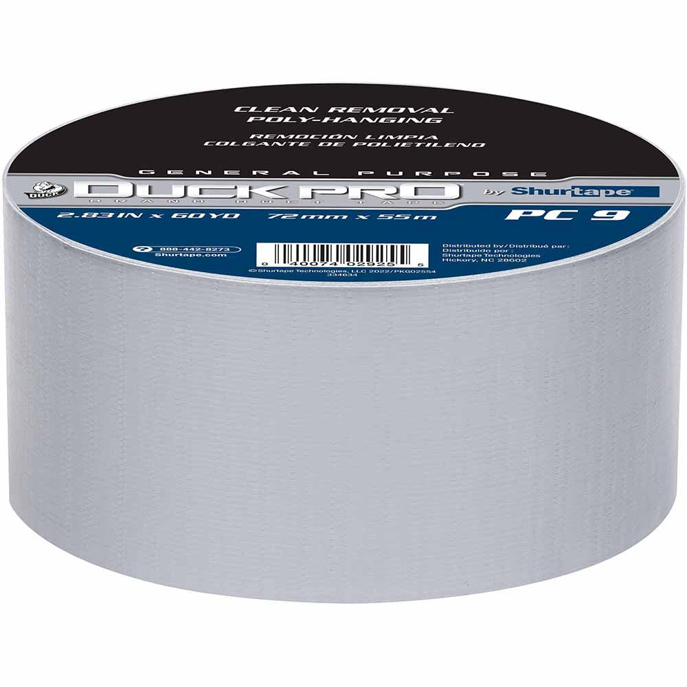 Shurtape 105473 PC 009 S Duck Pro 9Mil 72mm x 55m Silver Contractor Grade, Co-Extruded Cloth Duc