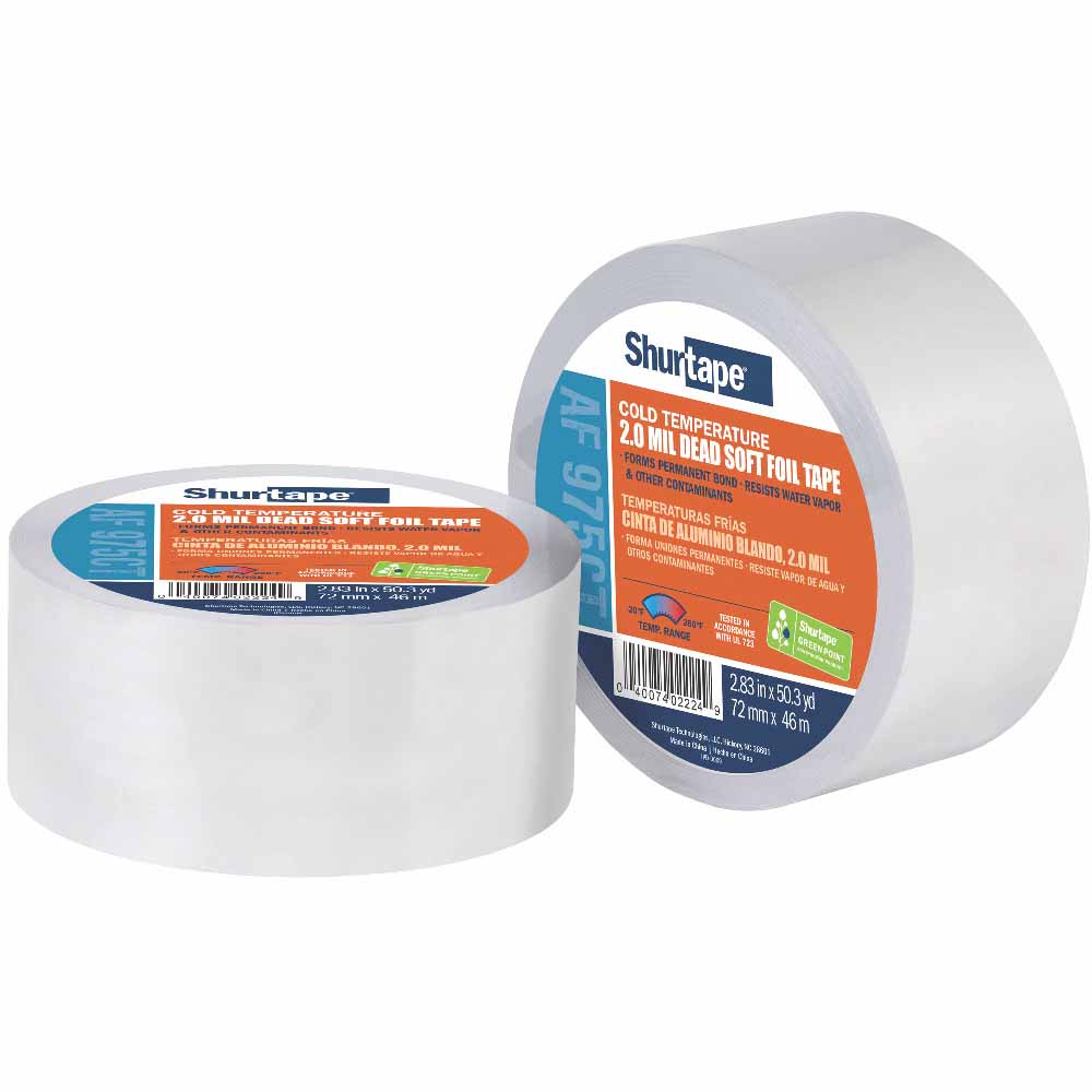Cold temperature aluminum foil tape for use in temperatures ranging from -20 F to 260 F when joining and sealing aluminum-backed or fibrous insulation and metal ductwork, as well as when repairing metal and sheet metal. AF 975CT is linered, designed with an acrylic adhesive, tested in accordance with UL 723 and delivers an airtight seal every time.
