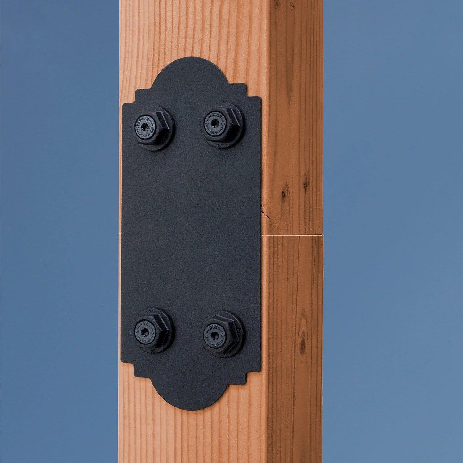 The Outdoor Accents Mission Collection Strap for 6x Lumber adds decorative flair and structural support to wood-to-wood connections, ideal for outdoor living projects.