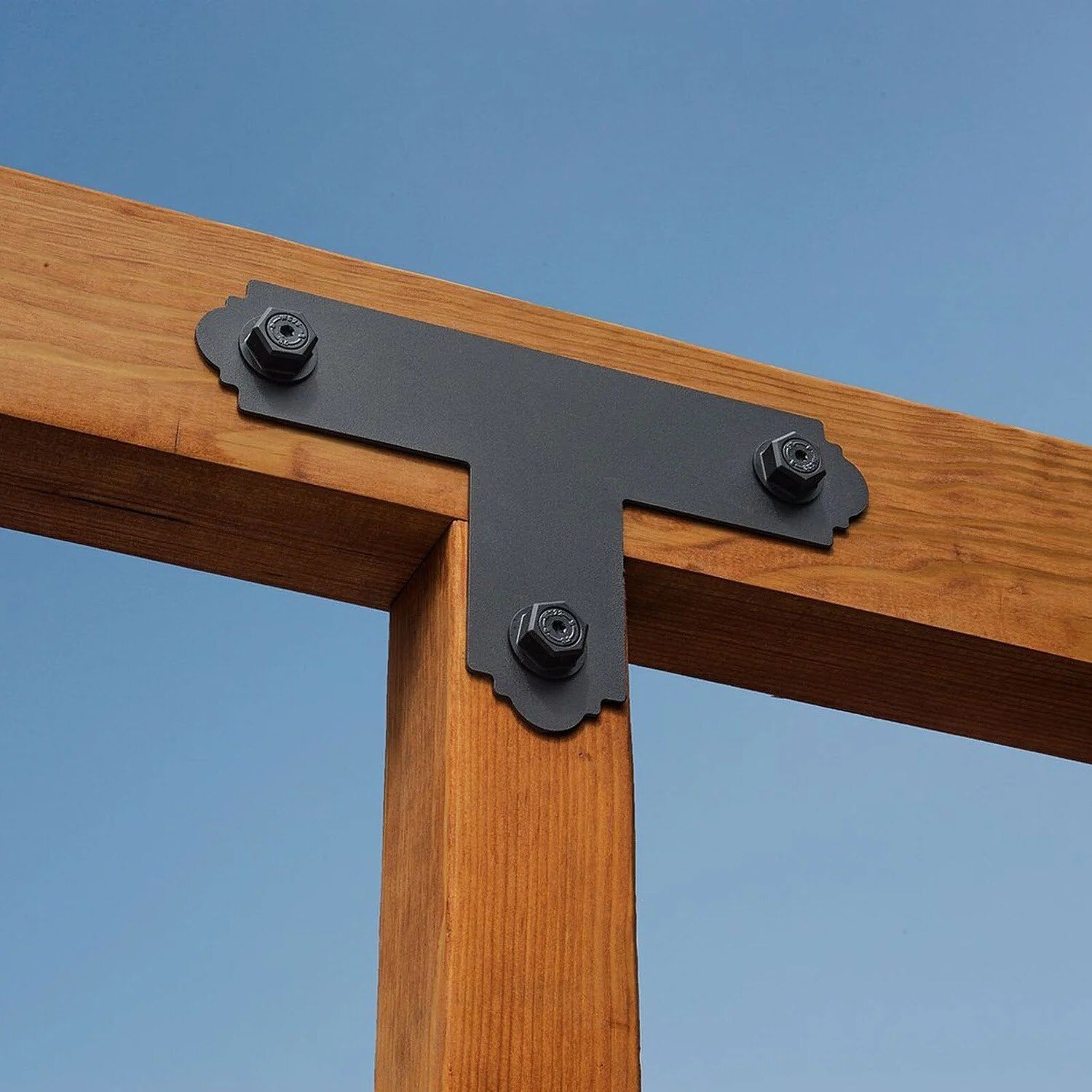 The Outdoor Accents Mission Collection T Strap for 4x4 provides a decorative and durable solution for reinforcing wood-to-wood connections in outdoor structures.