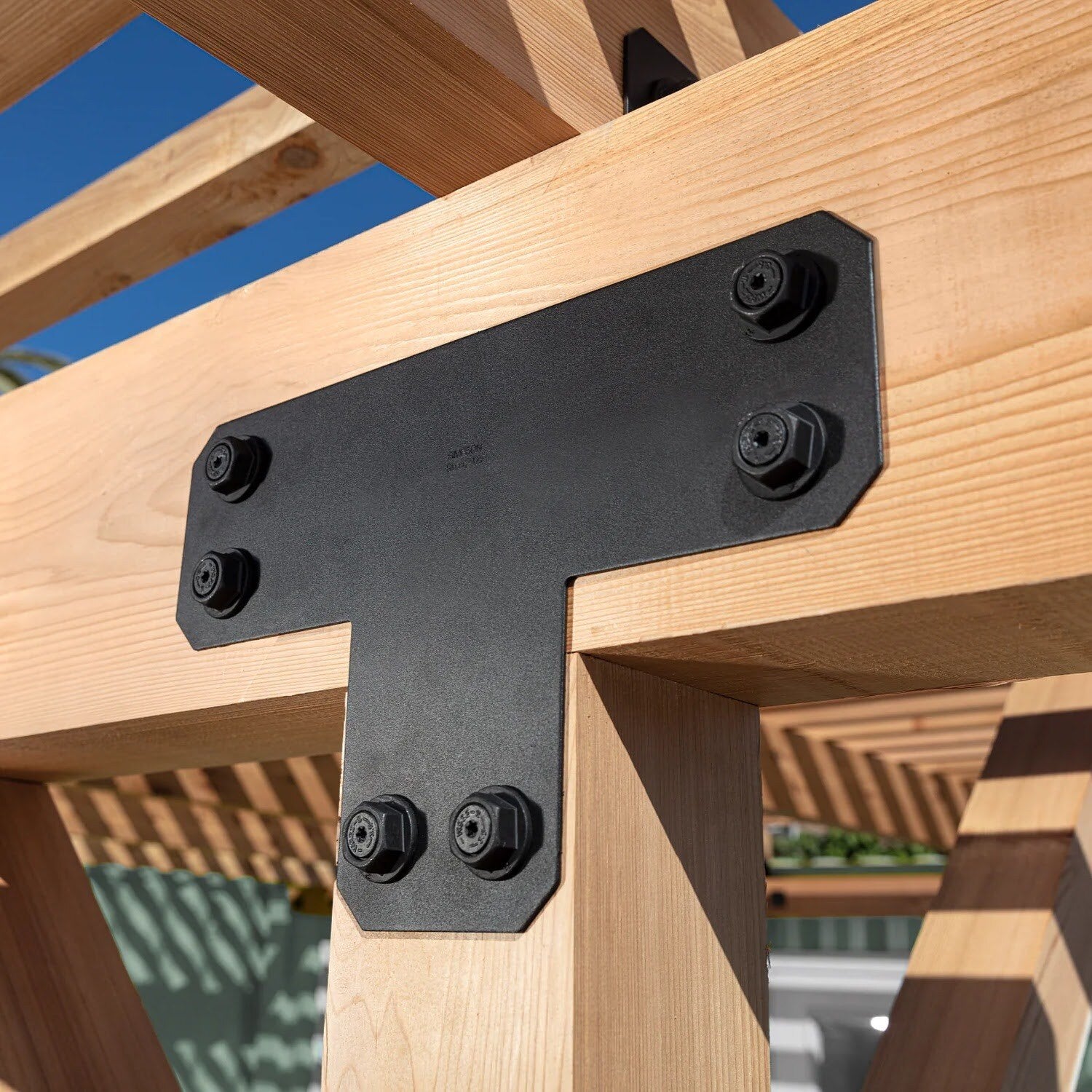 The Outdoor Accents Avant Collection T Strap for 6x6 provides a modern and durable solution for wood-to-wood connections, featuring a corrosion-resistant ZMAX galvanization and black powder coat finish.