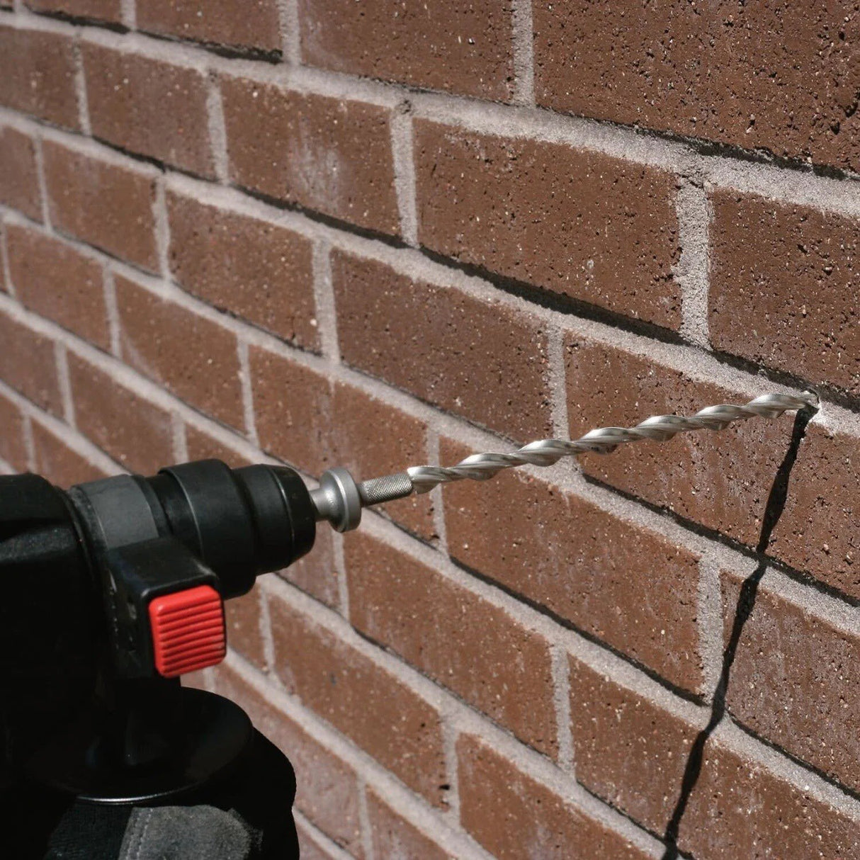 - Drive the tie using an SDS-plus rotohammer in hammer mode until the tip of the installation tool enters the exterior surface of the masonry and countersinks the tie below the surface.