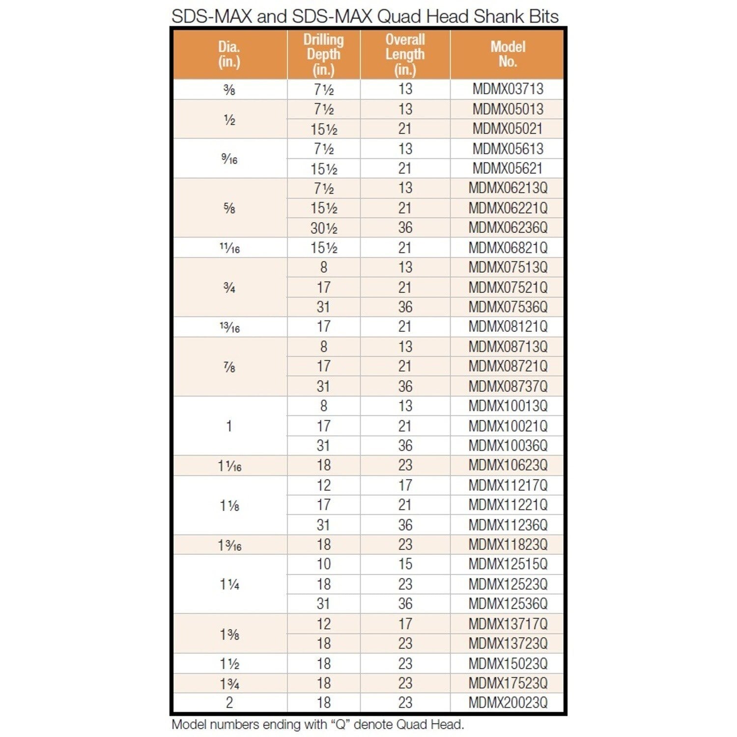 Simpson Strong-Tie MDMX10623Q (1-1/16" x 23") SDS-max Shank Quad-Head Drill Bit for Concrete Drilling (1 Piece)