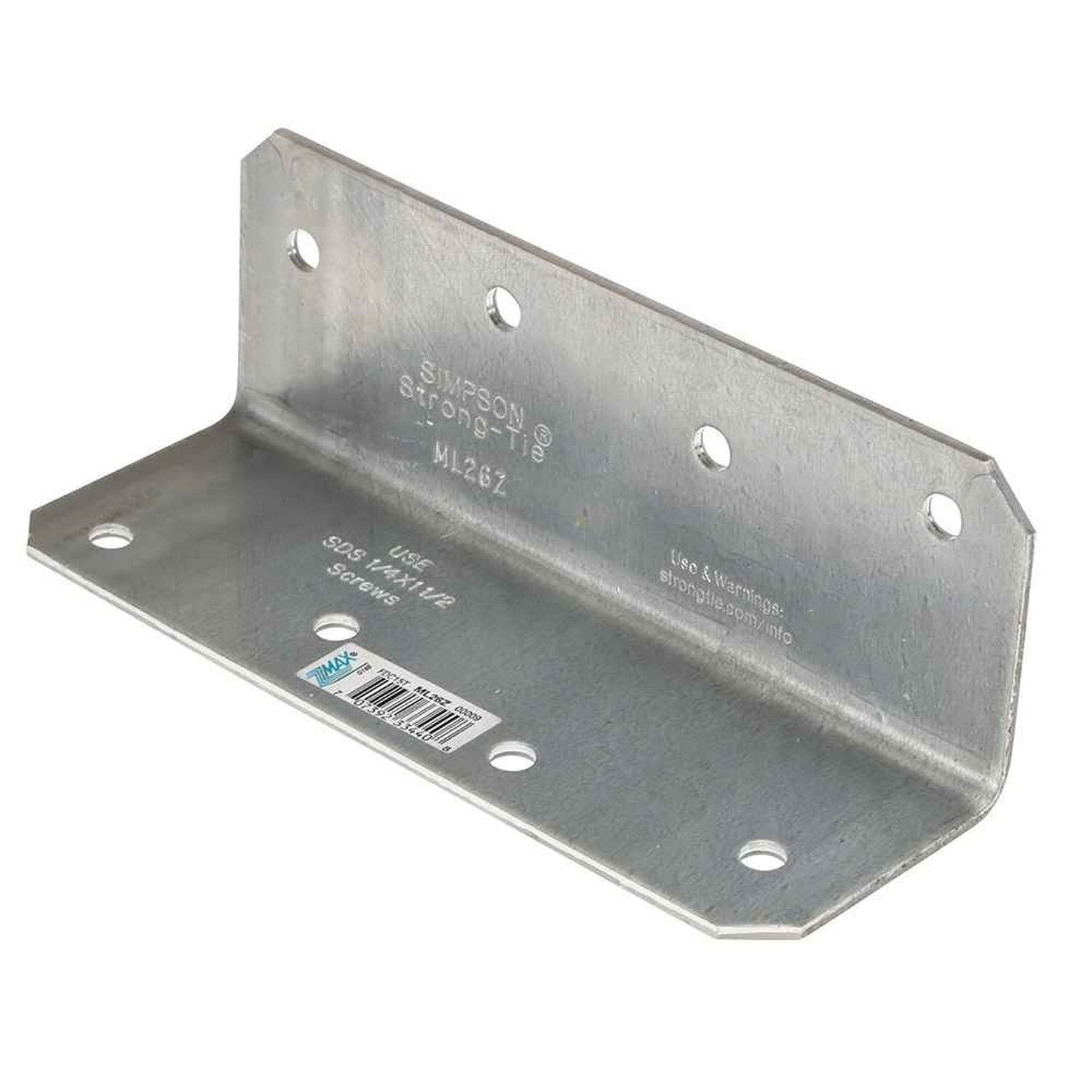 The Simpson ML26Z Medium L Angle features a ZMAX galvanized finish for corrosion resistance and is designed for versatile 90-degree connections.