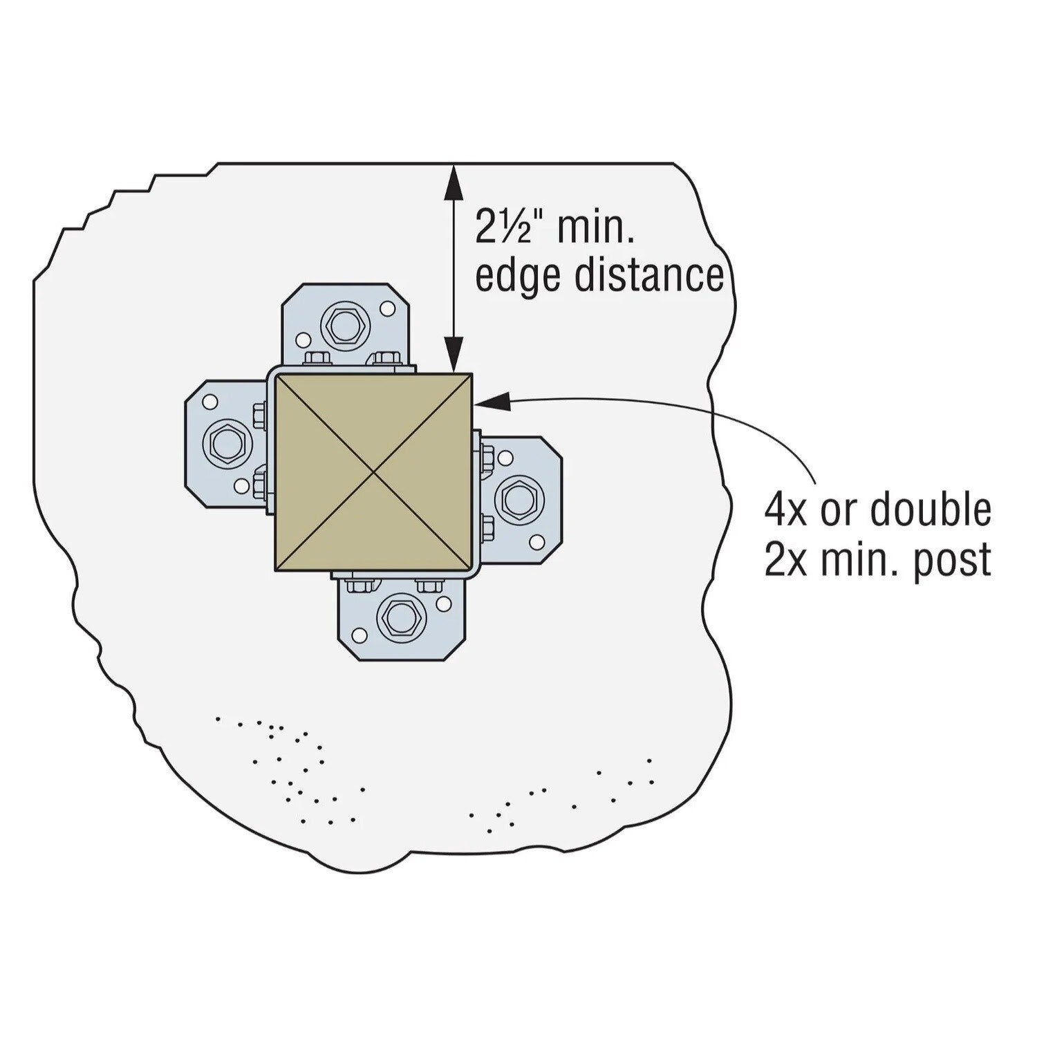 - Designed for (2) 2x4 or larger posts or columns