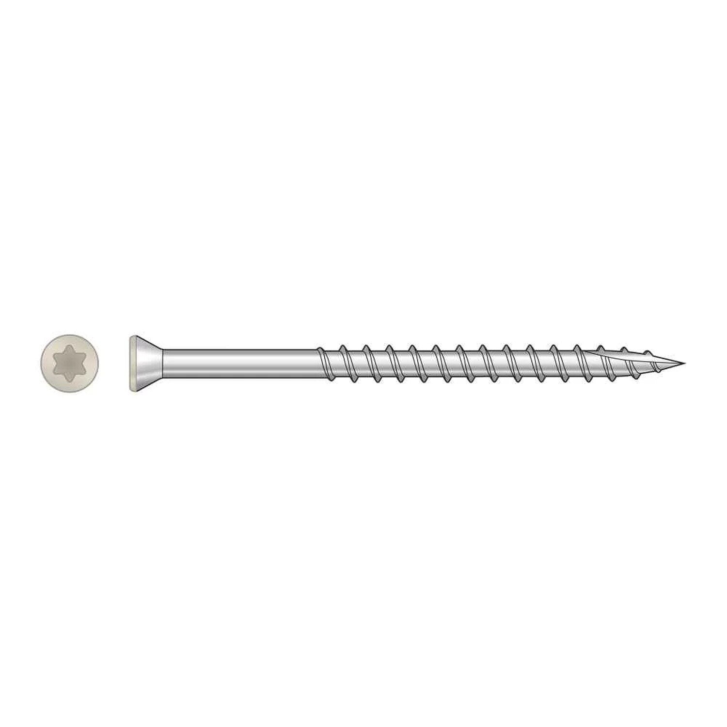 Simpson Trim-Head Wood Decking Screw - Star drive trim head screw available in Type 305 or Type 316 stainless steel in unpainted or painted heads to match your decking material. Type-17 point for fast starts and coarse threads on approximately 2/3 of the shank draw the decking tight to the framing.