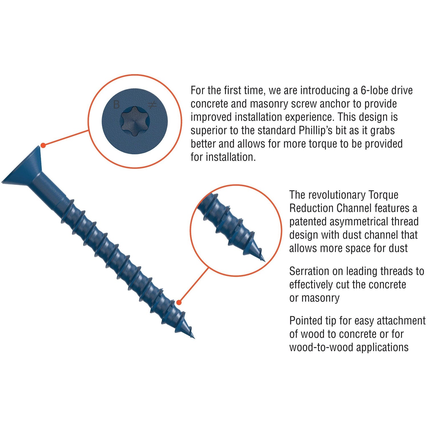 The Simpson Strong-Tie Titen Turbo screw anchor is fast and easy to install, and incredibly reliable in its performance. The secret behind the performance of the Titen Turbo lies in a thread design that lowers driving torque while providing superior holding power. The revolutionary Torque Reduction Channel between the threads gives drilling dust a place to go, thereby significantly reducing torque-related issues like binding, stripping and snapping. This screw anchor delivers consistently trouble-free installation and fastening strength you can depend on.