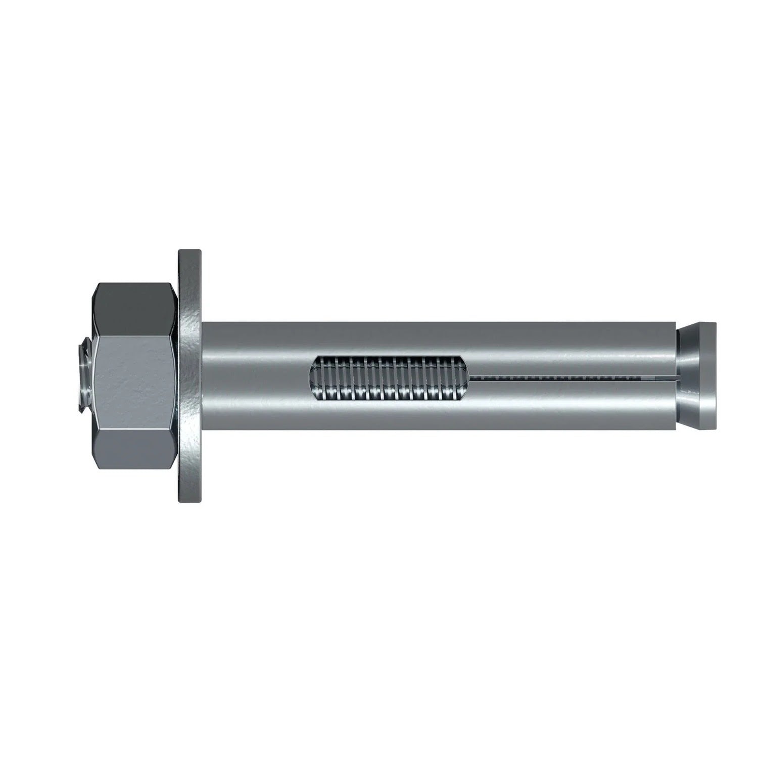 The Sleeve-All Hex-Head Sleeve Anchor is a zinc-plated carbon steel anchor designed for secure fastening in solid base materials such as concrete and brick.