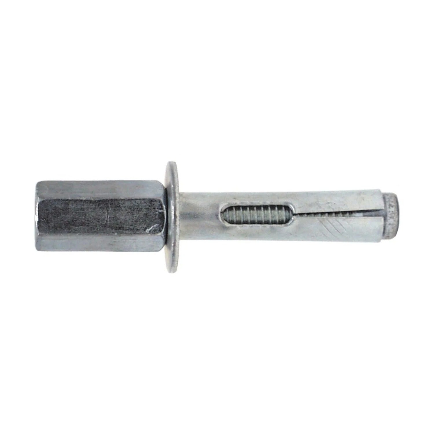 The Simpson Strong-Tie Sleeve-All Rod-Coupler Head Sleeve Anchor is a pre-assembled expanding anchor designed for solid base materials, providing secure fastening in concrete, brick, and CMU.