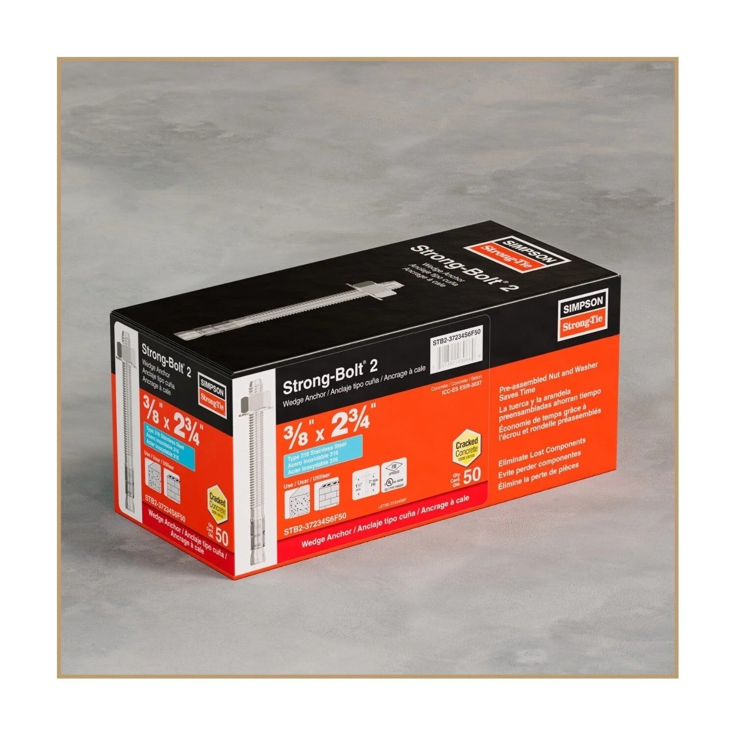 Simpson Strong-Tie STB2-37234S6F50 Strong Bolt (3/8" x 2-3/4") Fully Assembled 2 Wedge Anchor - Type 316 (50 Pack)