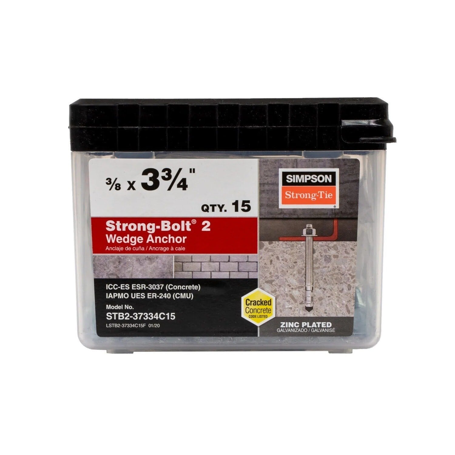 Simpson Strong-Tie STB2-37334C15 Strong Bolt (3/8" x 3-3/4") 2 Wedge Anchor - Carbon Steel (15 Pack)