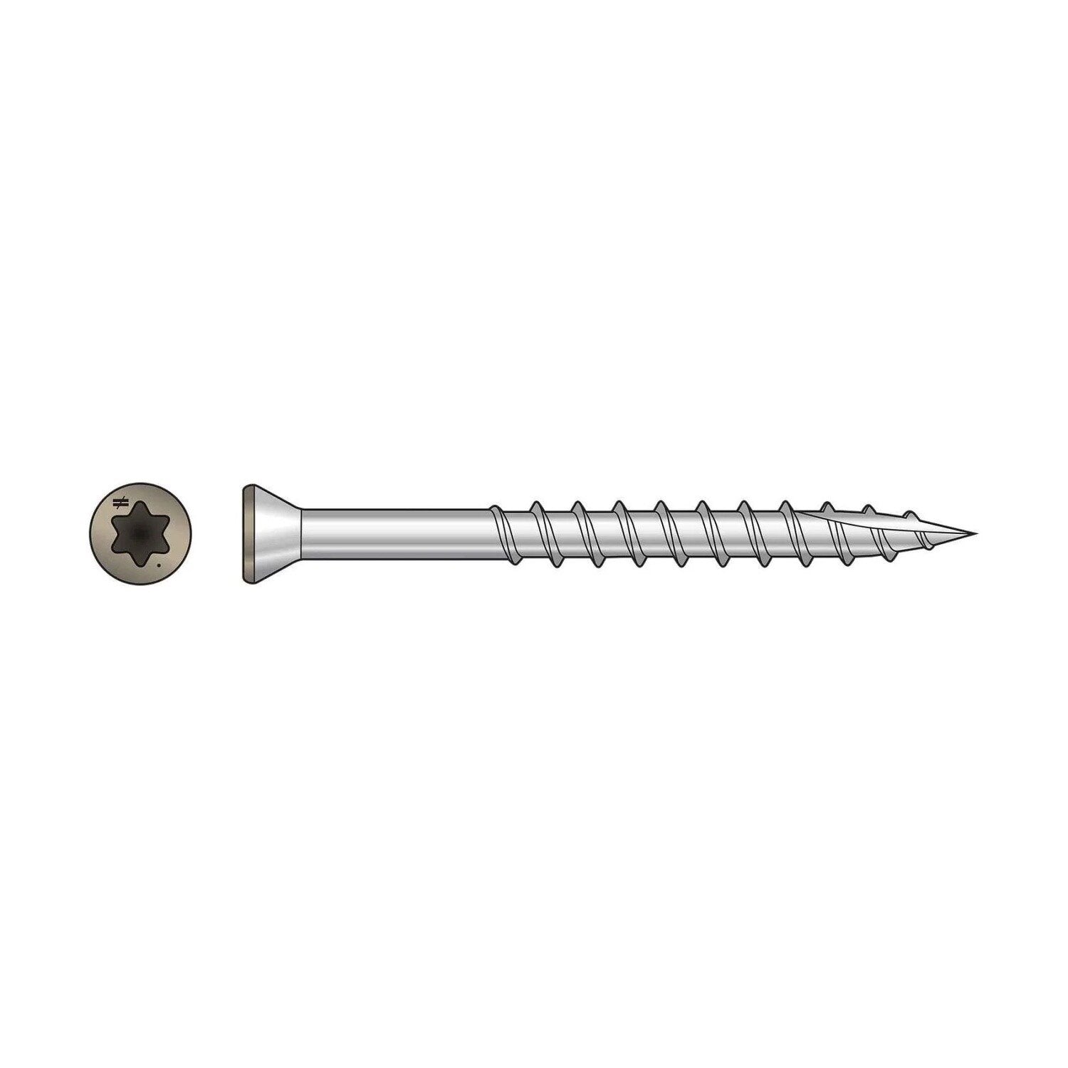 The Simpson T07162FTPTN02 Trim-Head Screws are corrosion-resistant fasteners designed for demanding environments, featuring a trim head, 6-lobe star drive, and a type-17 point for easy installation.