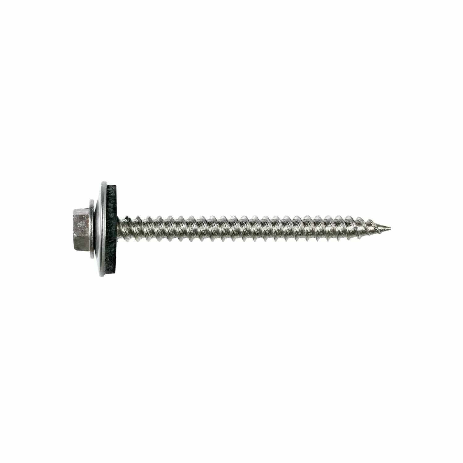 Crafted for securing aluminum agricultural siding panels to wood joists without the need for predrilling, the Simpson T09150HWAM metal-panel screw with EPDM washer is a reliable choice. Its design includes an extra-sharp point for swift penetration of aluminum panels. The 1/4" hex drive and twin-lead threads enable secure fastening of one to three panel thicknesses to the wood substrate. Engineered from Type 316 stainless steel, these screws are built to endure even the most corrosive environments.