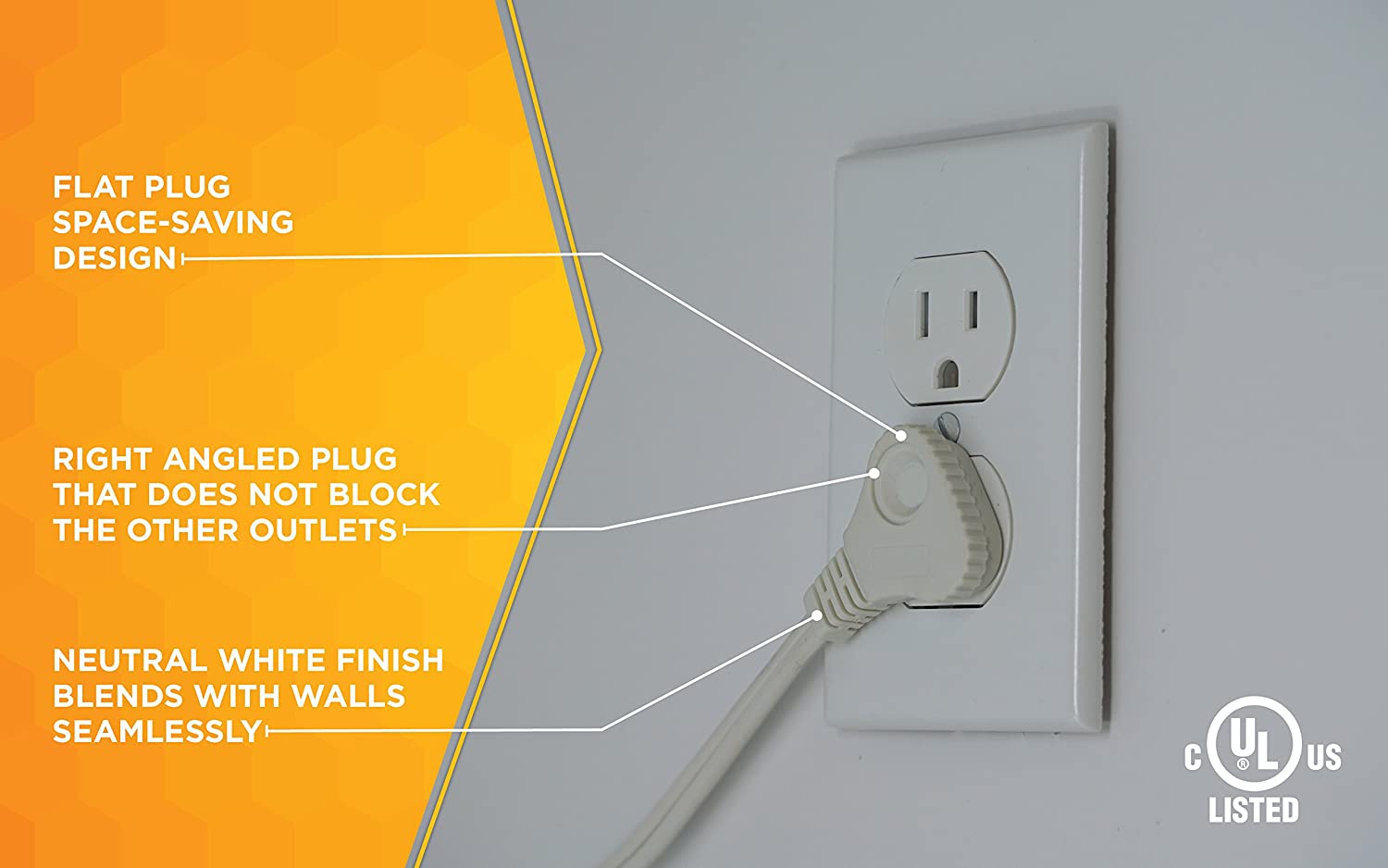 - SPACE SAVING flat design eliminates bulky awkward cords from cluttering your indoor decor and minimizes tripping