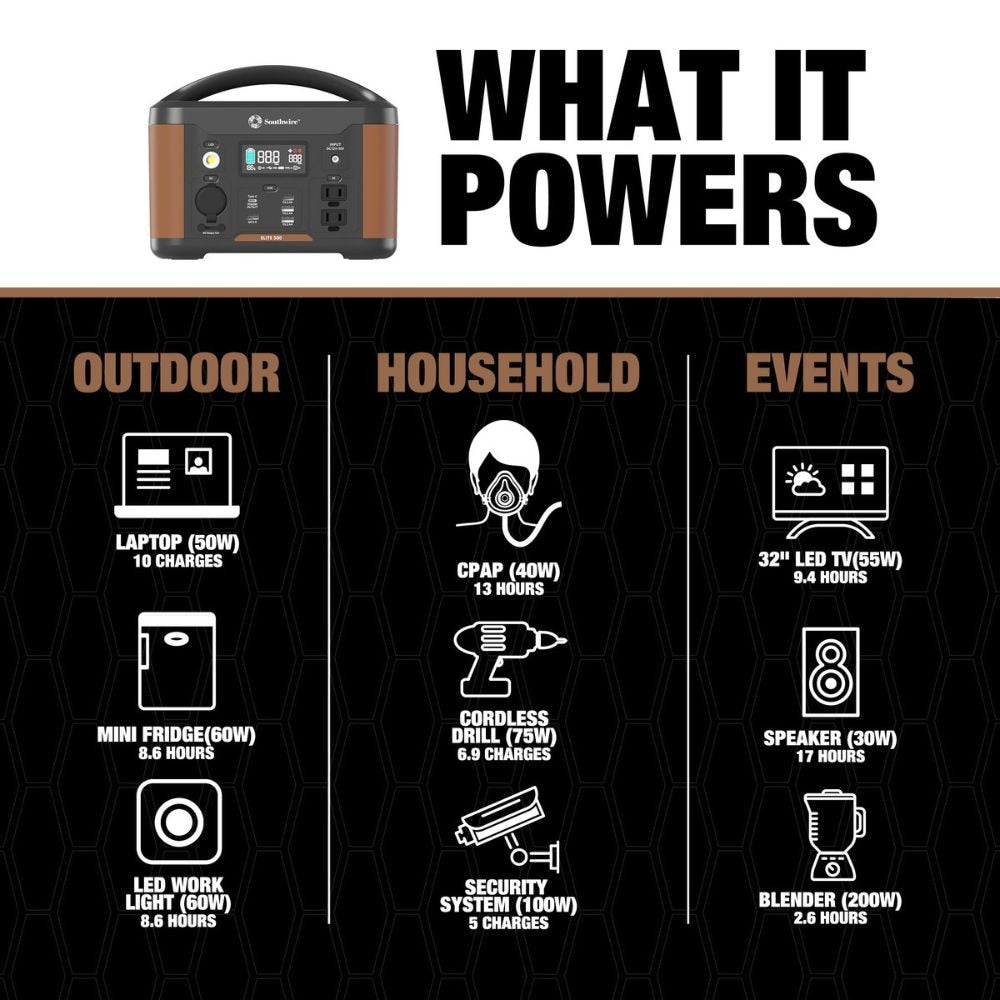 - Perfect for emergency backup power, camping, RVs, and remote power