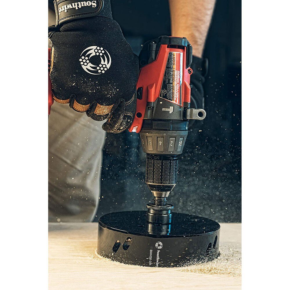 Southwire's 5-3/8 inch bi-metal holesaw is used for heavy-duty, fast cutting of steel, aluminum, brass, wood, plastic, and drywall.