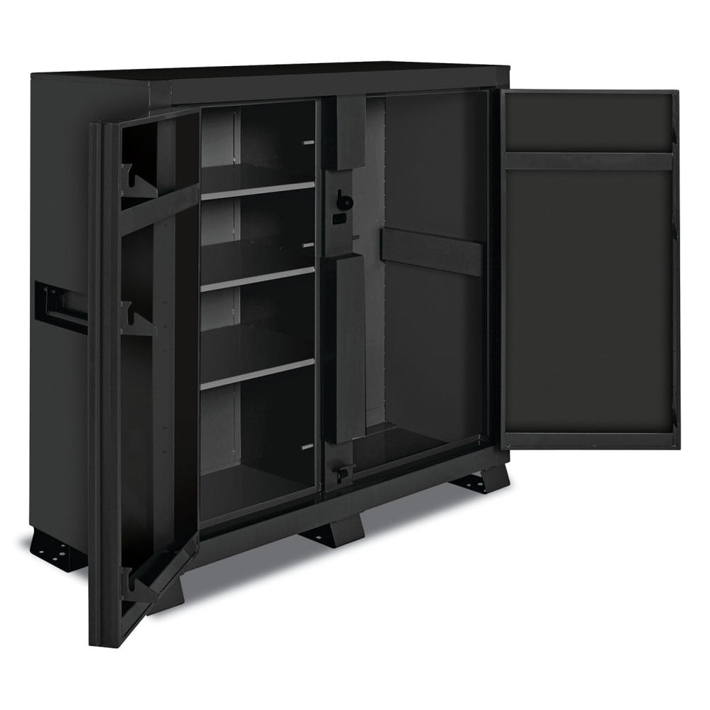 The Southwires Clamshell Cabinet gives you unrestricted access to your tools, materials and equipment. With heavy duty shelves and a single locking point, this cabinet makes it possible to easily access and maximize organization of your materials and equipment. With the Southwire Clamshell Cabinet, there is no better way to control and secure your livelihood.