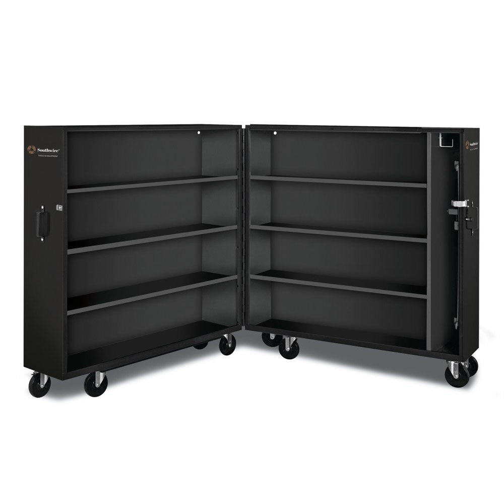 The Southwires Clamshell Cabinet gives you unrestricted access to your tools, materials and equipment. With heavy duty shelves and a single locking point, this cabinet makes it possible to easily access and maximize organization of your materials and equipment. With the Southwire Clamshell Cabinet, there is no better way to control and secure your livelihood.