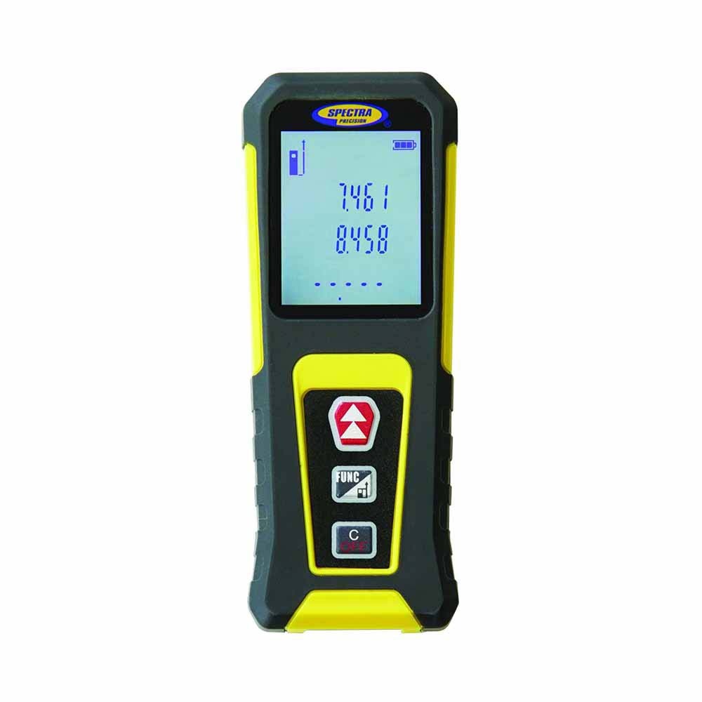 Spectra Precision QM10 laser distance meter is compact, fitting comfortably in your hands and in your pocket or tool belt. Simply press a button to take a measurement. The QM10 is simple to operate and easy to use. Designed for everyday use on the jobsite. The measuring range is 100 feet (30 M). it is handy for difficult vertical measurements, cluttered environments, over water and other measurements for which tape measures are not convenient.