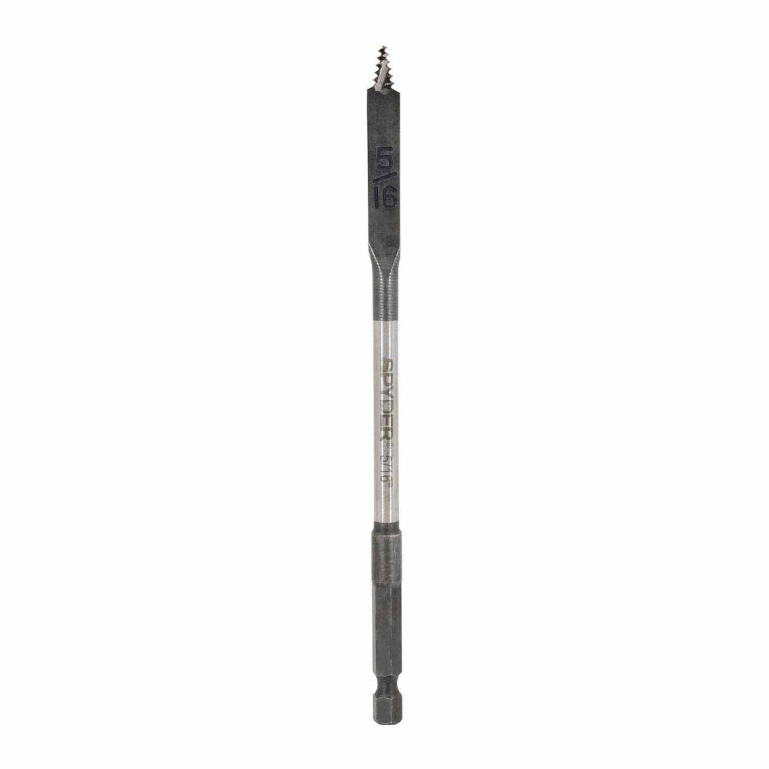 Spyder Stinger spade bits feature an innovative non-clogging, automatic-feeding precision tip for optimal speed and accuracy. This patent pending tip automatically engages the work surface for no-thrust drilling. Unlike other spade bits with a self feeding thread point, the Stinger spade bit won't clog, won't wander and drills up to 20x faster than the competition. Chuck them into your impacting tool for even greater drilling power on soft and hard woods.