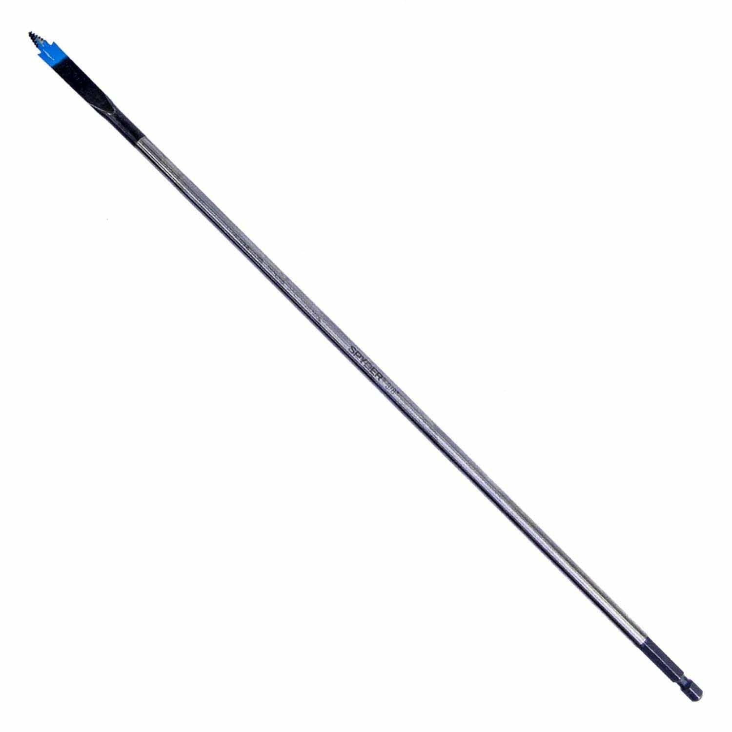 Spyder Stinger spade bits feature an innovative non-clogging, automatic-feeding precision tip for optimal speed and accuracy. This patent pending tip automatically engages the work surface for no-thrust drilling. Unlike other spade bits with a self feeding thread point, the Stinger spade bit won’t clog, won’t wander and drills up to 20x faster than the competition. Chuck them into your impacting tool for even greater drilling power on soft and hard woods.