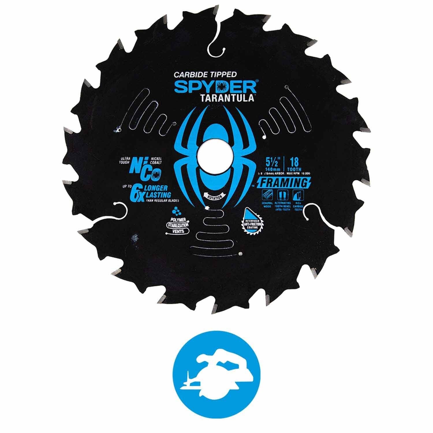 Rip and crosscut with ease with Spyder Tarantula Framing circular saw blades. NiCo teeth are sharpened 3x to provide clean cuts and exceptionally long life. Track straight with reduced friction, heat and noise – the Tarantula circular saw blade is the professionals choice for framing and construction. Framing and construction blade is for use in new wood materials. Up to 6x the life of standard carbide blades.