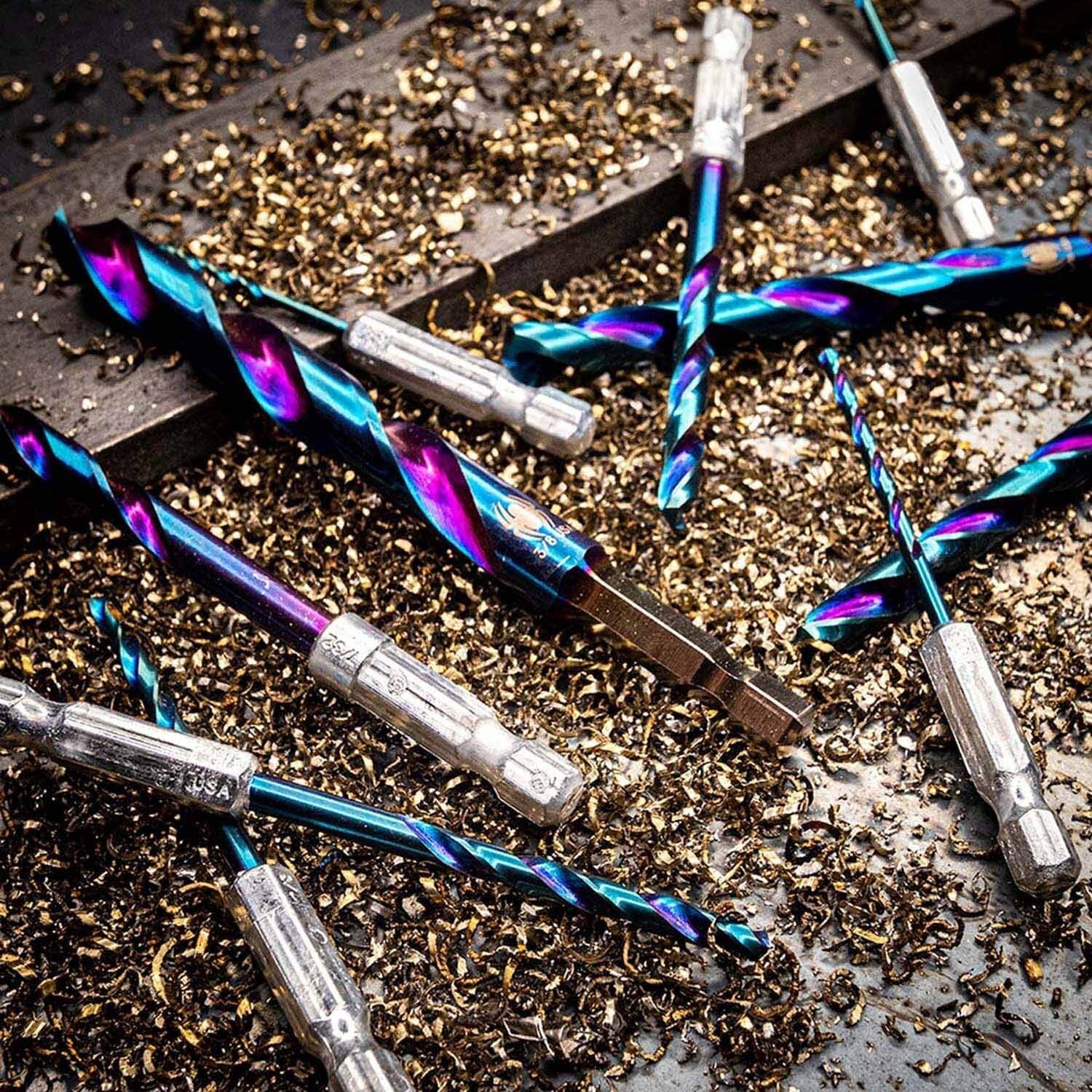 Spyder Stinger Mach-Blue Armor Plated high speed steel (HSS) bits are high performance metal and wood drilling bits that provide exceptional drill bit quality and durability, drilling performance, and value. The Mach-Blue Armor Plating, combined with the advanced M-series alloy tool steel construction and proprietary heat treatment, make these bits truly revolutionary.