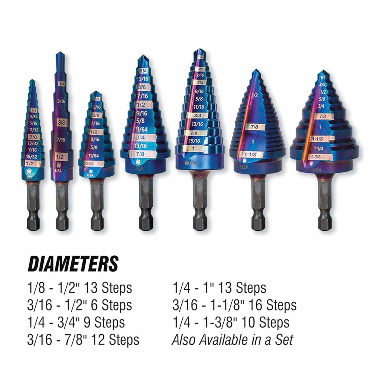 Spyder 19019 1/8 to 1/2-Inch Hex Shank 13 Step Drill Bit