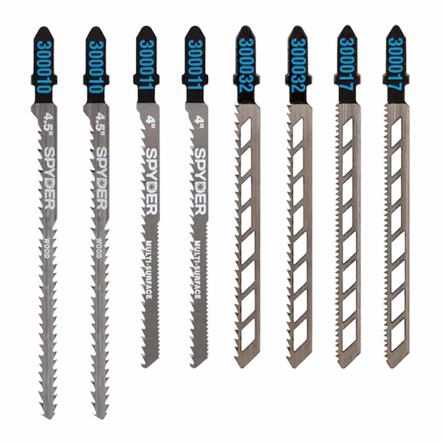 Spyder 300097 8-Piece Double-Sided And Skeleton T-Shank High-Carbon Steel Jig Saw Blade Set