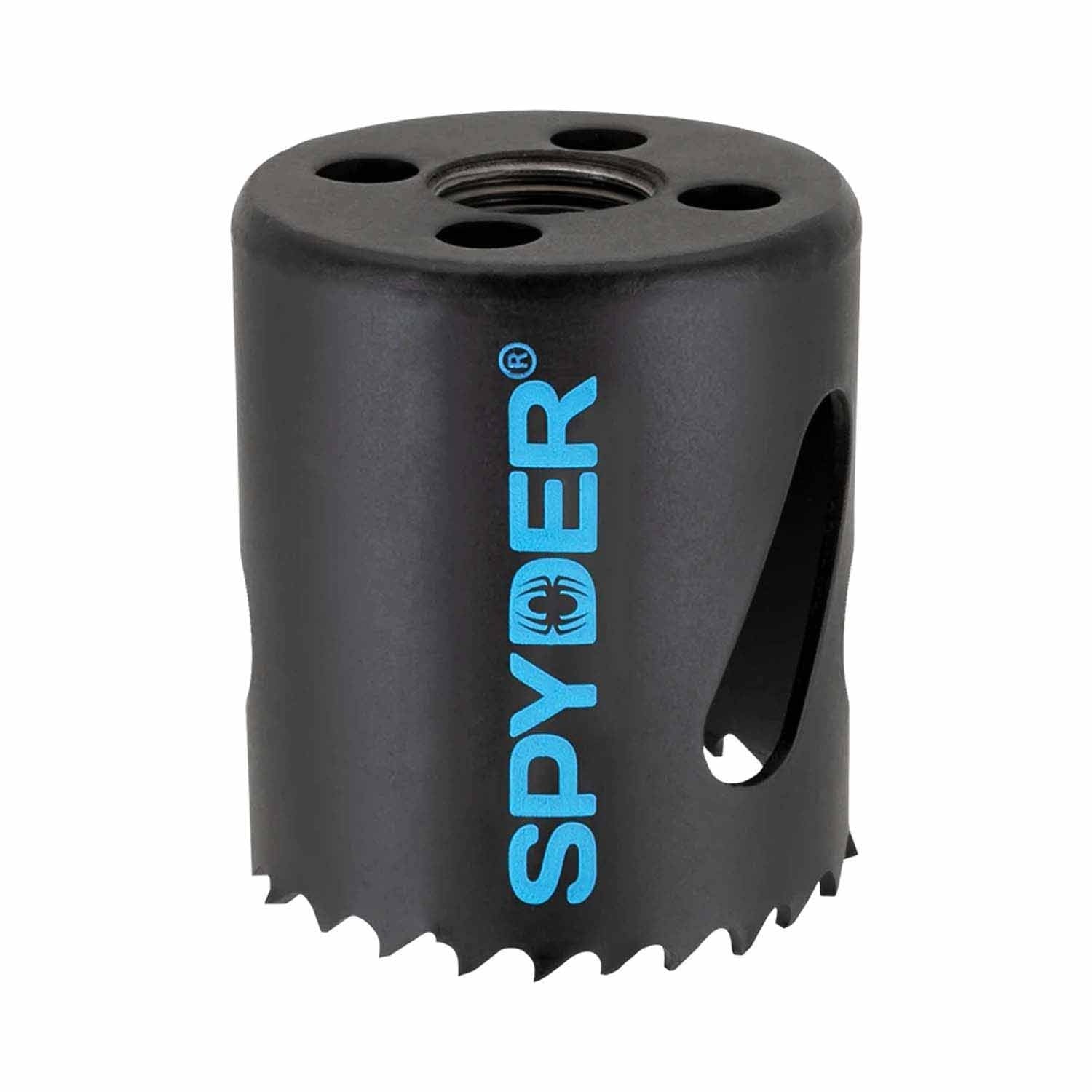 Spyder’s Bi-Metal hole saws feature variable tooth pitch geometry and bi-metal steel that make them the durable choice for making holes in wood with nails, metals and plastics. Use Spyder’s Rapid Core Eject™ arbor system to remove cores without prying—drill hole, press button, pull back the hole saw, and eject the core. Cut at an angle, and use two adapters (second adapter sold separately) on one pilot bit to enlarge existing holes. All Spyder hole saws fit on Spyder Rapid Core Eject™ arbor/pilot bits, and on universal hole saw arbors.