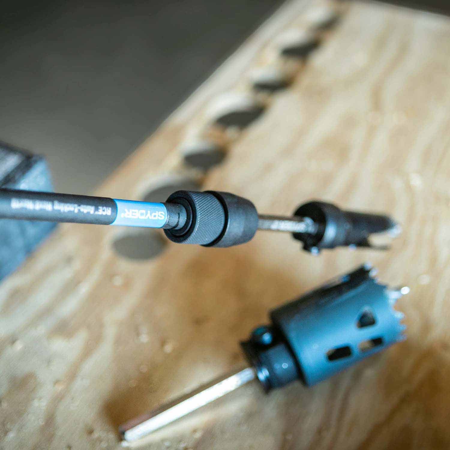 The Spyder Hole Saw Arbor Extension is a durable and versatile accessory designed for extending the reach of hole saws. Made from high-quality carbon steel, this extension ensures reliable performance and compatibility with Spyder Rapid Core Eject Arbors.