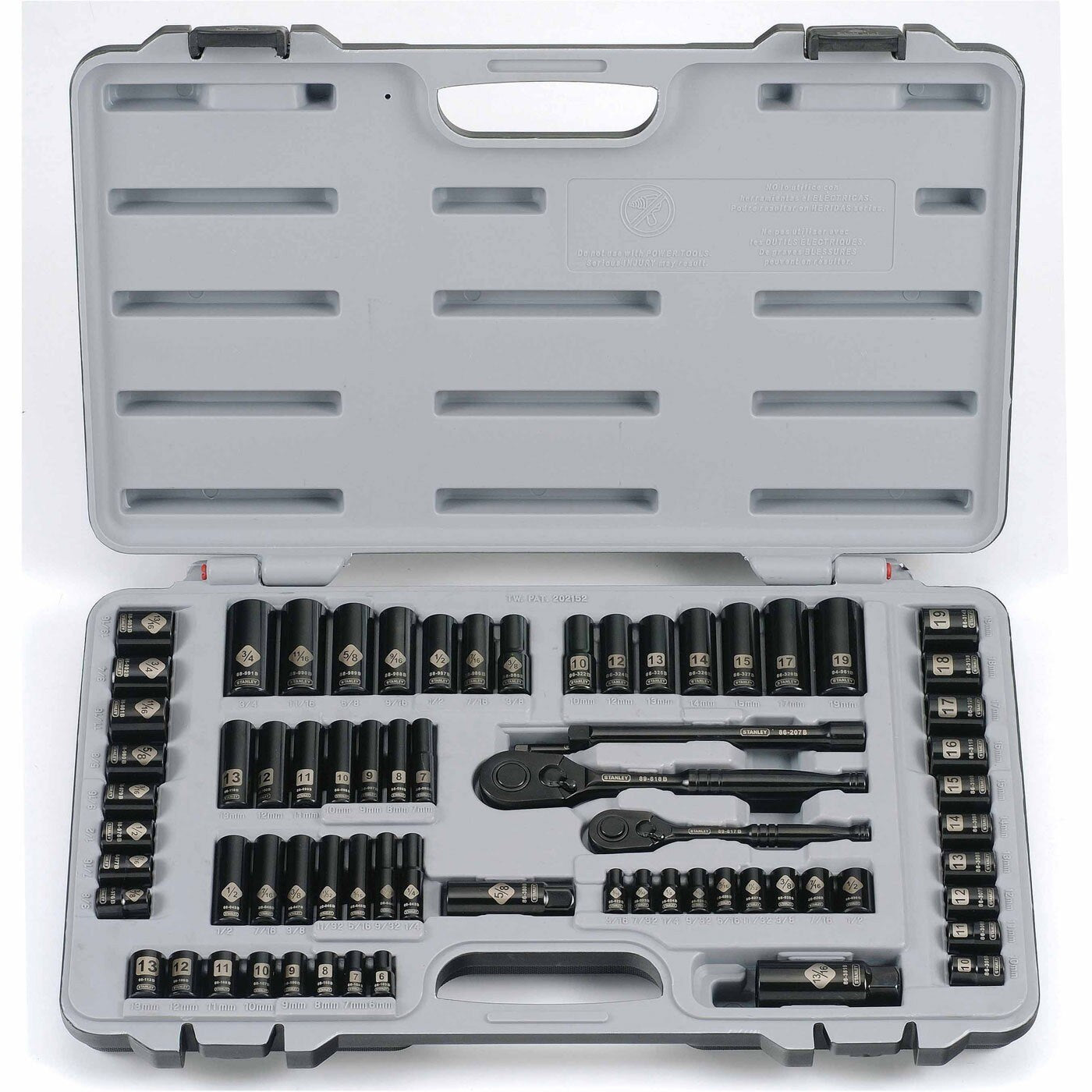 Stanley 92-824 69 Pc Socket Set Black Chrome Laser Etched 1/4", 3/8" Drives SAE/MM