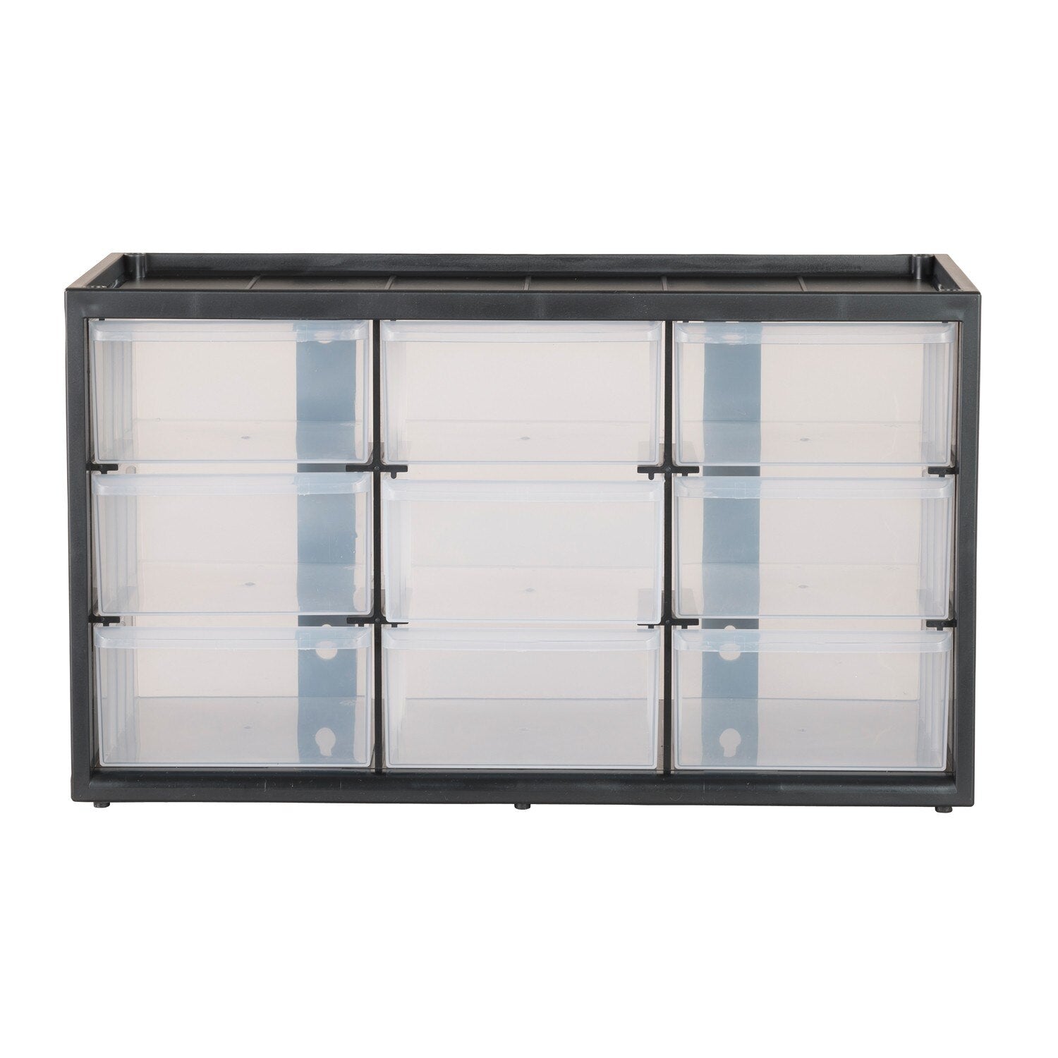 Stanley's 9 Large Drawer Bin System is ideal for small parts organization. The drawers are transparent providing good visibility to content stored in each drawer. Mount this bin system to the wall or stack one on top of another to keep your work space clear of clutter.