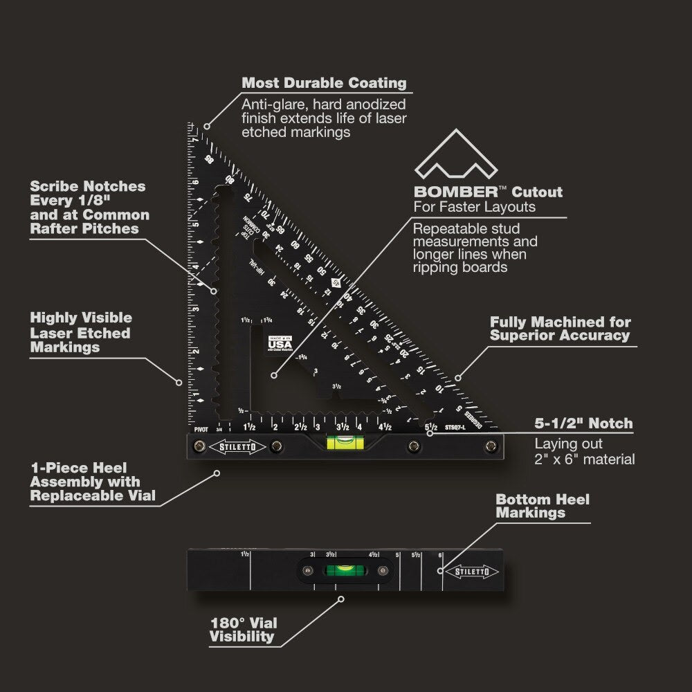 Stiletto STSQ7-L 7" Carpenter Square with Level