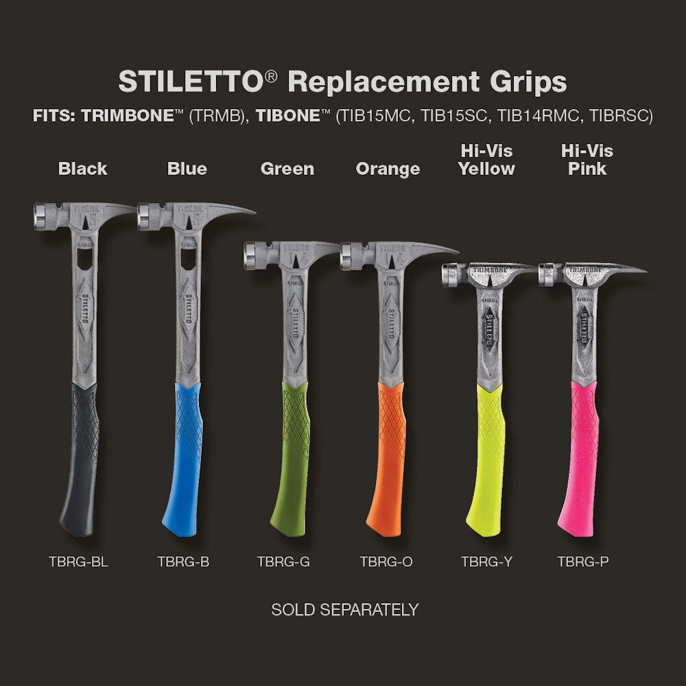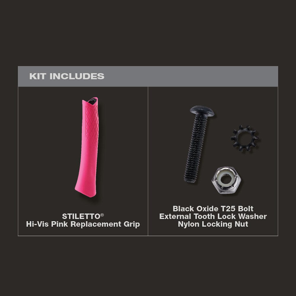 The STILETTO Hi-Vis Pink Replacement Grip extends the life of your hammer while providing a personal touch. The Replacement Hammer Grip is easy to install and remove on the jobsite with minimal tools. The STILETTO Replacement Grip is available in 6 colors and includes a Black Oxide T25 Bolt, Nylon Locking Nut, and External Tooth Lock