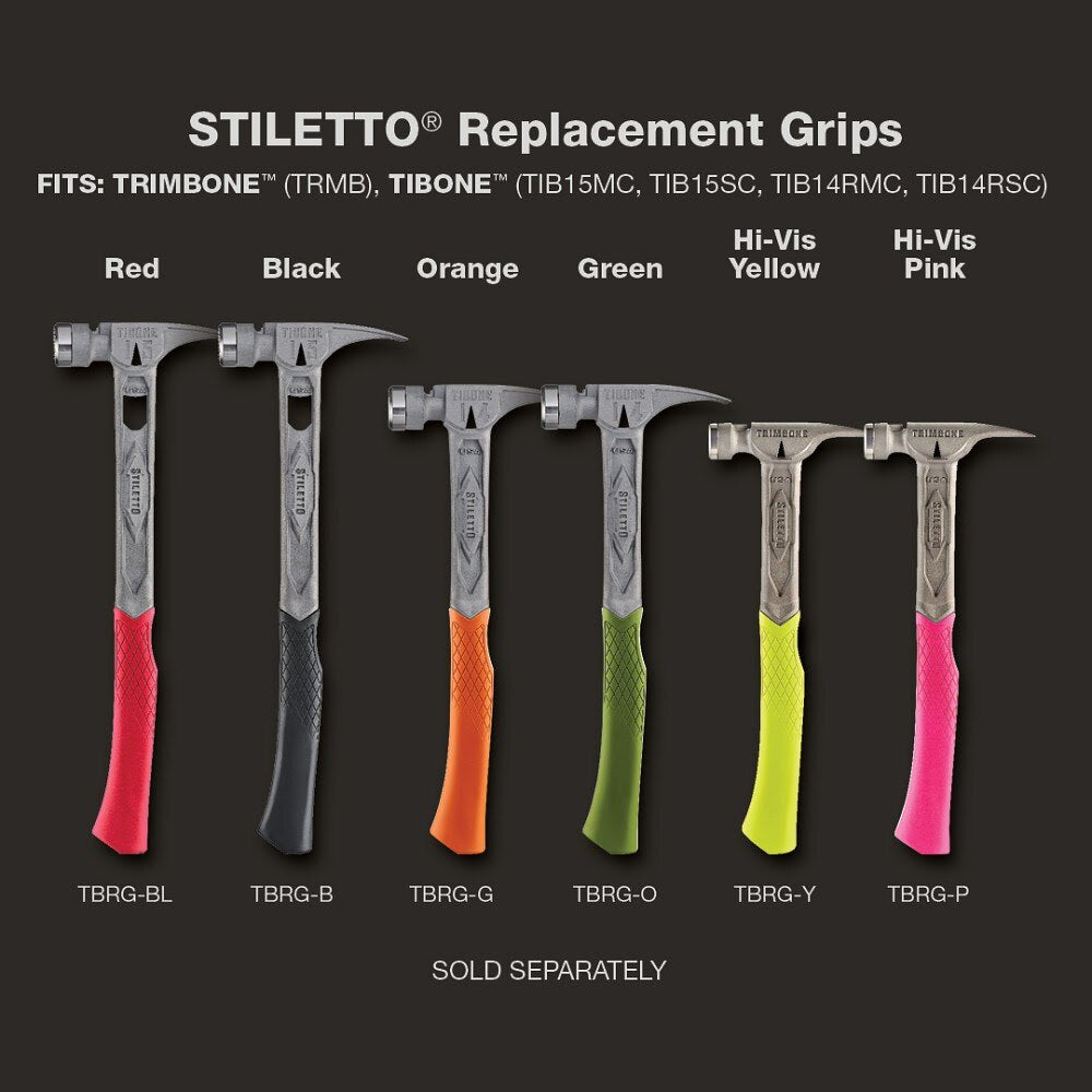 The STILETTO Red Replacement Grip extends the life of your hammer while providing a personal touch. The Replacement Hammer Grip is easy to install and remove on the jobsite with minimal tools. The STILETTO Replacement Grip is available in 6 colors and includes a Black Oxide T25 Bolt, Nylon Locking Nut, and External Tooth Lock