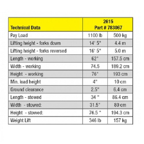 Sumner 783067 HD Contractor Lift 2615 15' x 1100lb Capacity