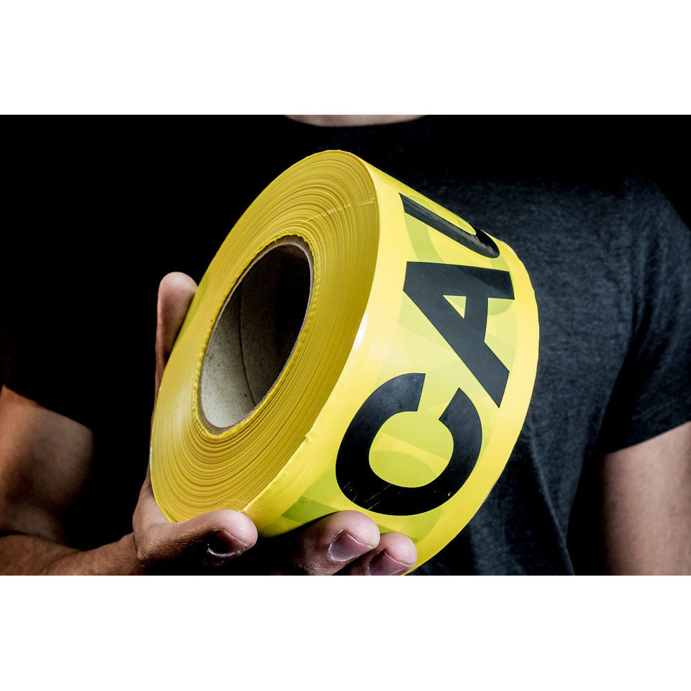 Keep workers safe with this non-adhesive caution tape for indoor and outdoor applications. It's made with a heavy, durable polyethylene plastic and does not tear or puncture easily.