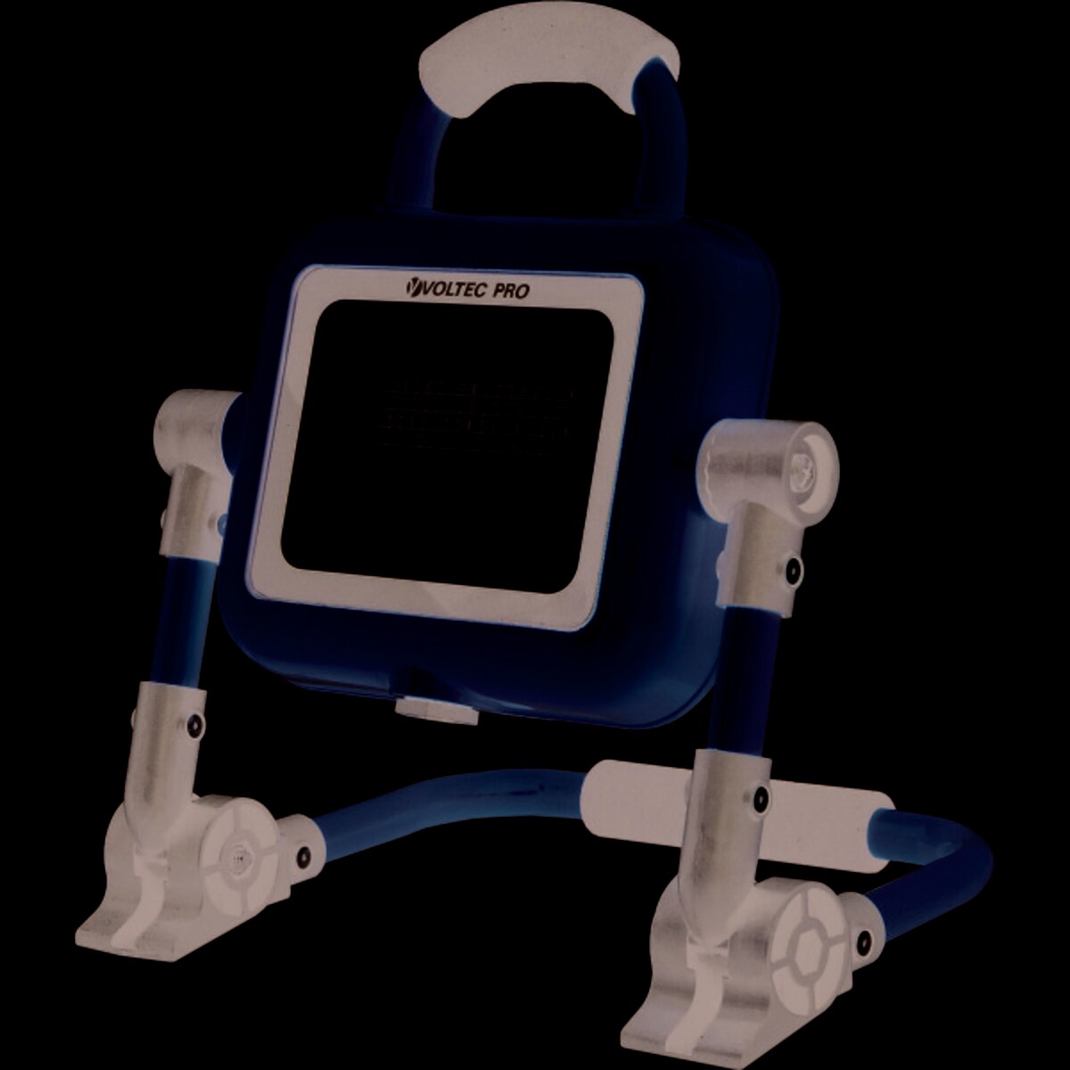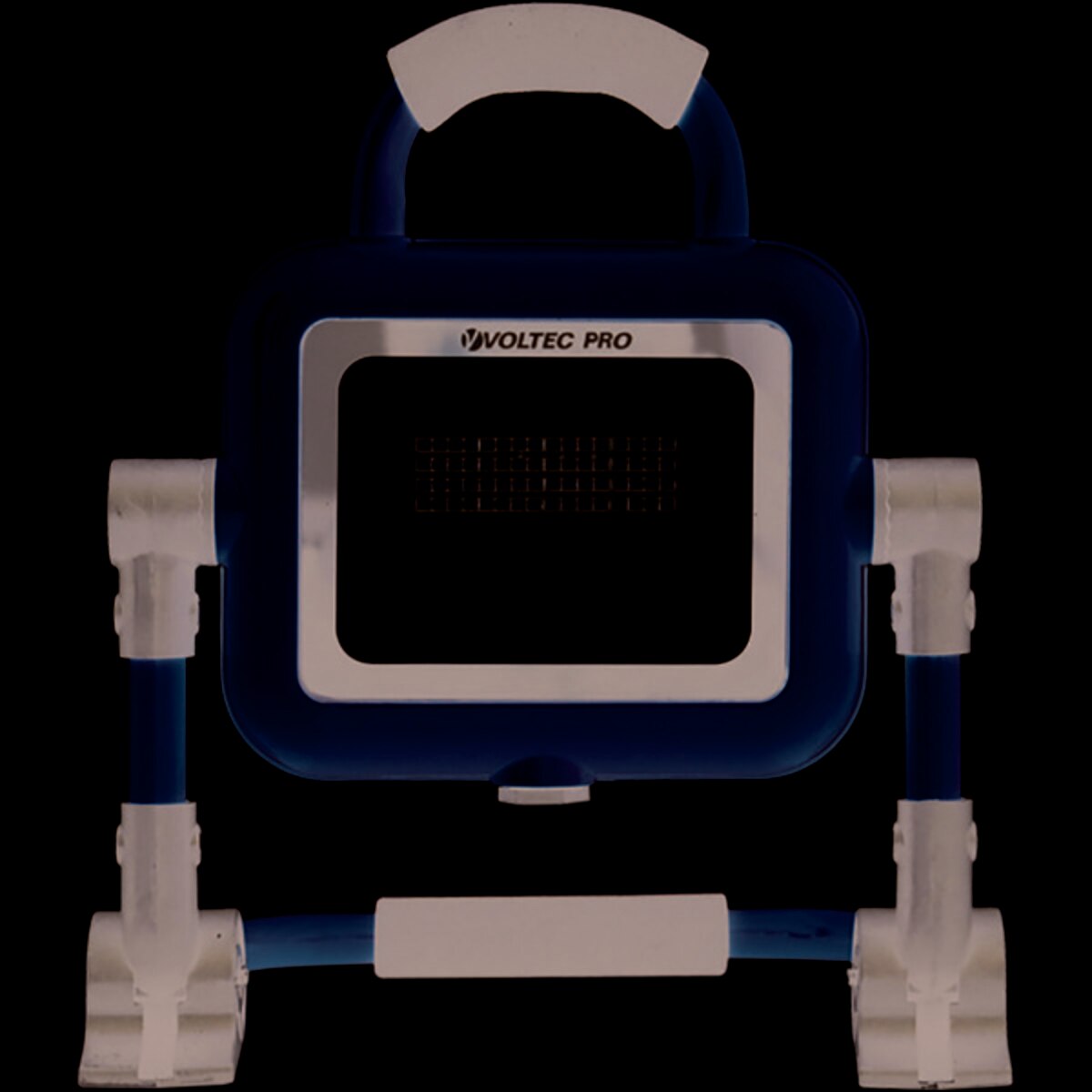 Voltec Power & Lighting's 4,400 Lumen 44 Watt AC LED portable work light has a rugged diecast aluminum housing and face frame for extra strength, and with new DOB (driver on board) LED technology this light is super bright with low heat output and a LED life span of 50,000 hours. This work light has a tool-free quick adjustment head which allows the light to be adjusted at multiple angles providing light where it is needed most. It also folds flat for easy compact storage and comes with an On/Off push switch that allows the user to turn on and off with the push of a switch eliminating the need to walk over to the power source to unplug the light to turn it off. This LED portable work light is equipped with a 3ft 18/3 SJTW black power cord with a straight blade plug NEMA 5-15P and is cULus listed for quality and saftey.
