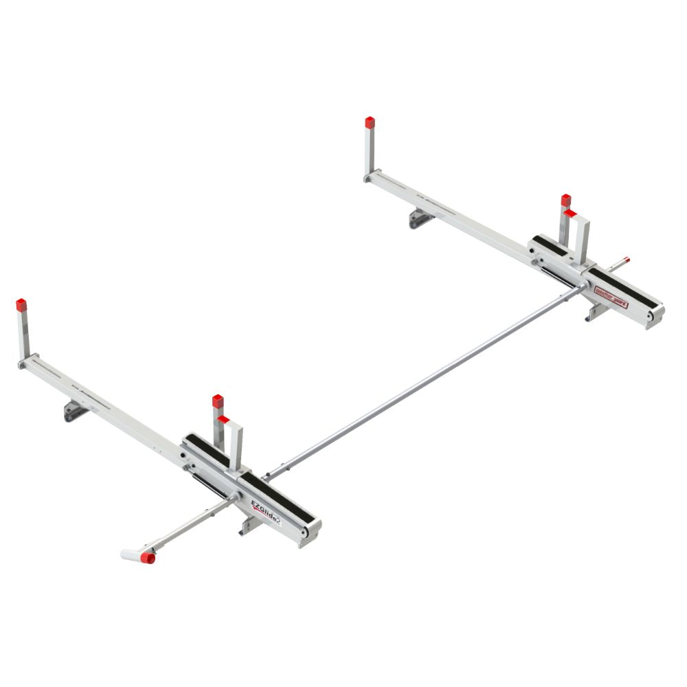 Designed to make getting ladders on and off your van almost effortless, EZGLIDE2™ is the easiest, lightest, and safest drop-down ladder rack system available for compact size vans. The Model 2261-3-01 EZGLIDE2™ drop-down roof rack comes with a single-side drop-down system that can be mounted on either the passenger or the driver side. Convert to a dual drop-down rack with a dual drop-down kit for long or short ladders. Use with the Weather Guard mounting channel kit designed for your van.