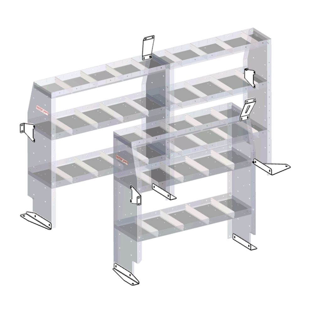 - Mounts two 42" wide and one 36" wide Weather Guard van shelving units