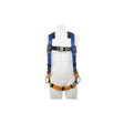 Blue Armor H163001 Climbing/Positioning Harness with 4 D-rings features Relief Handles to achieve the Gravity Override position and help reduce the potential hazards of suspension trauma, WebAlert™ inspectable webbing and impact indicators, 5-point adjustments for optimal fit, lightweight hardware and pads, and bright colors for worker visibility on the jobsite. The rear dorsal D-ring is made from high quality forged alloy steel for strength and durability with hip D-rings for positioning and chest D-rings for climbing applications. Quick Connect chest and leg buckles provide fast and easy connections.