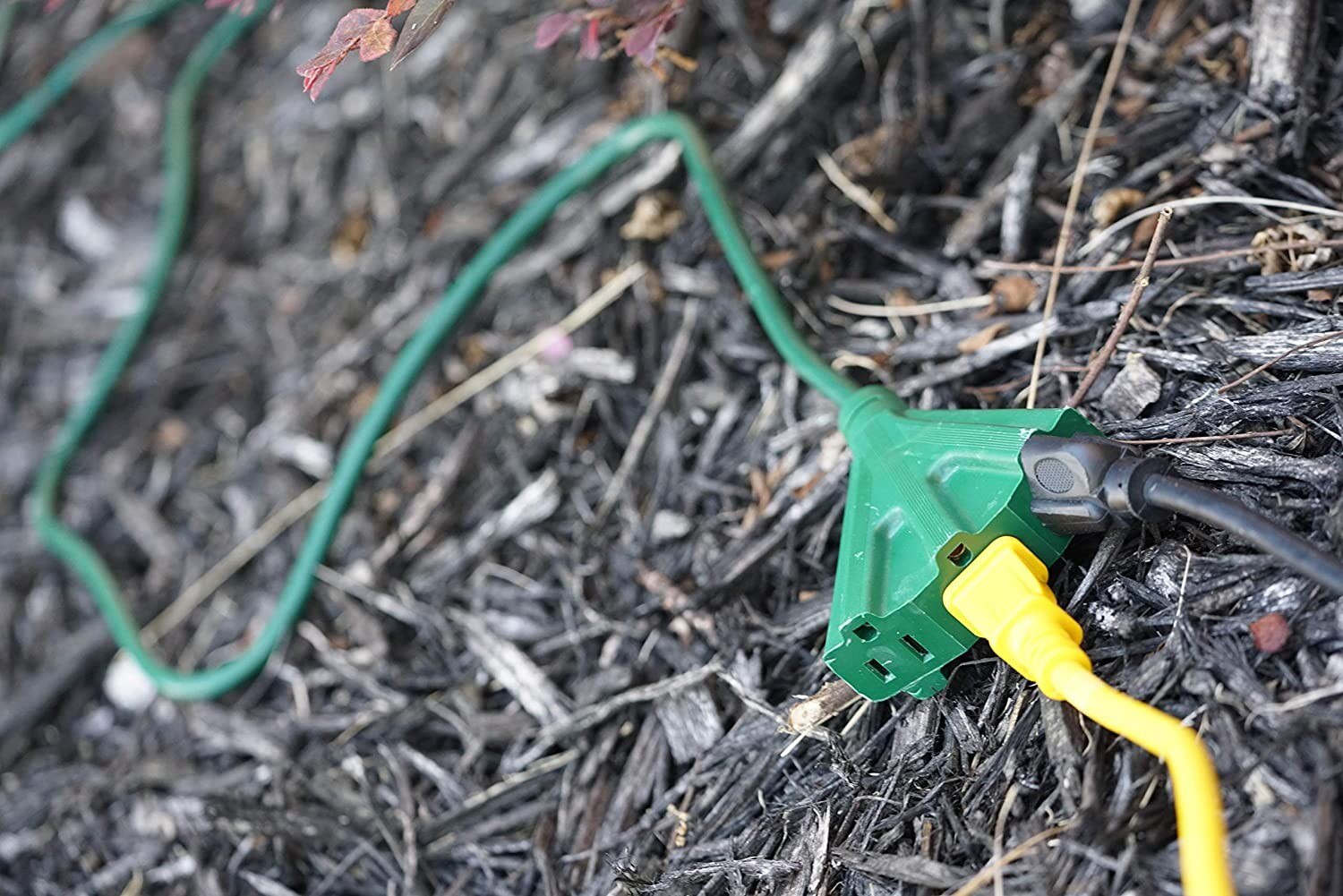 - 8-foot green colored cord blends into exterior landscaping, suitable for both indoor/outdoor applications