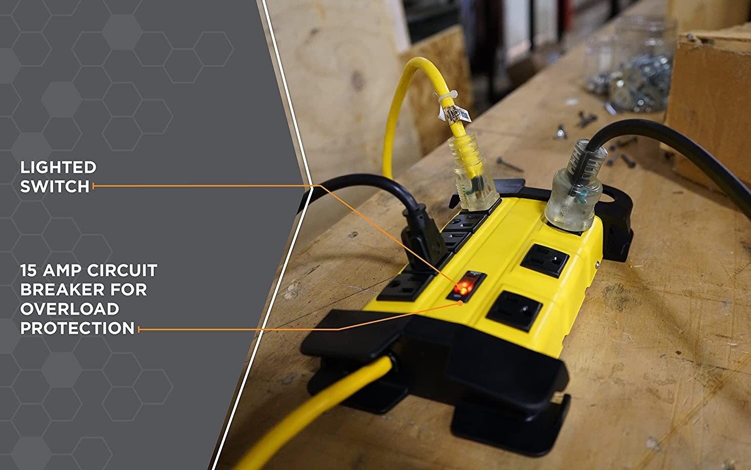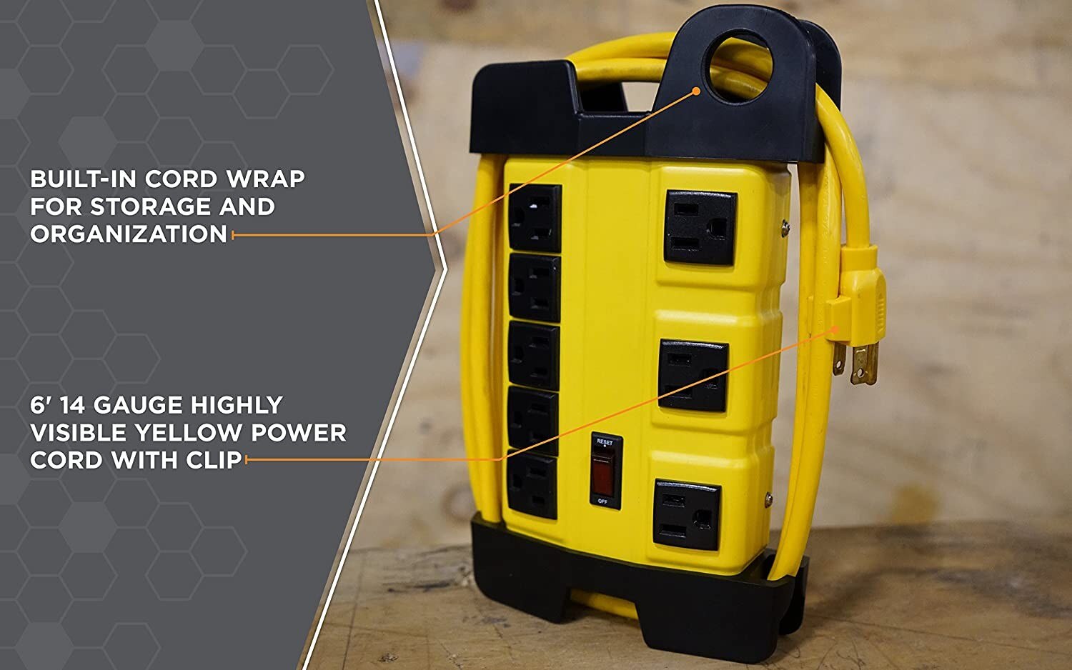- HIGHLY VISIBLE 6 foot, 14 gauge yellow power cord with clip, adds extra safety and prevents tripping
