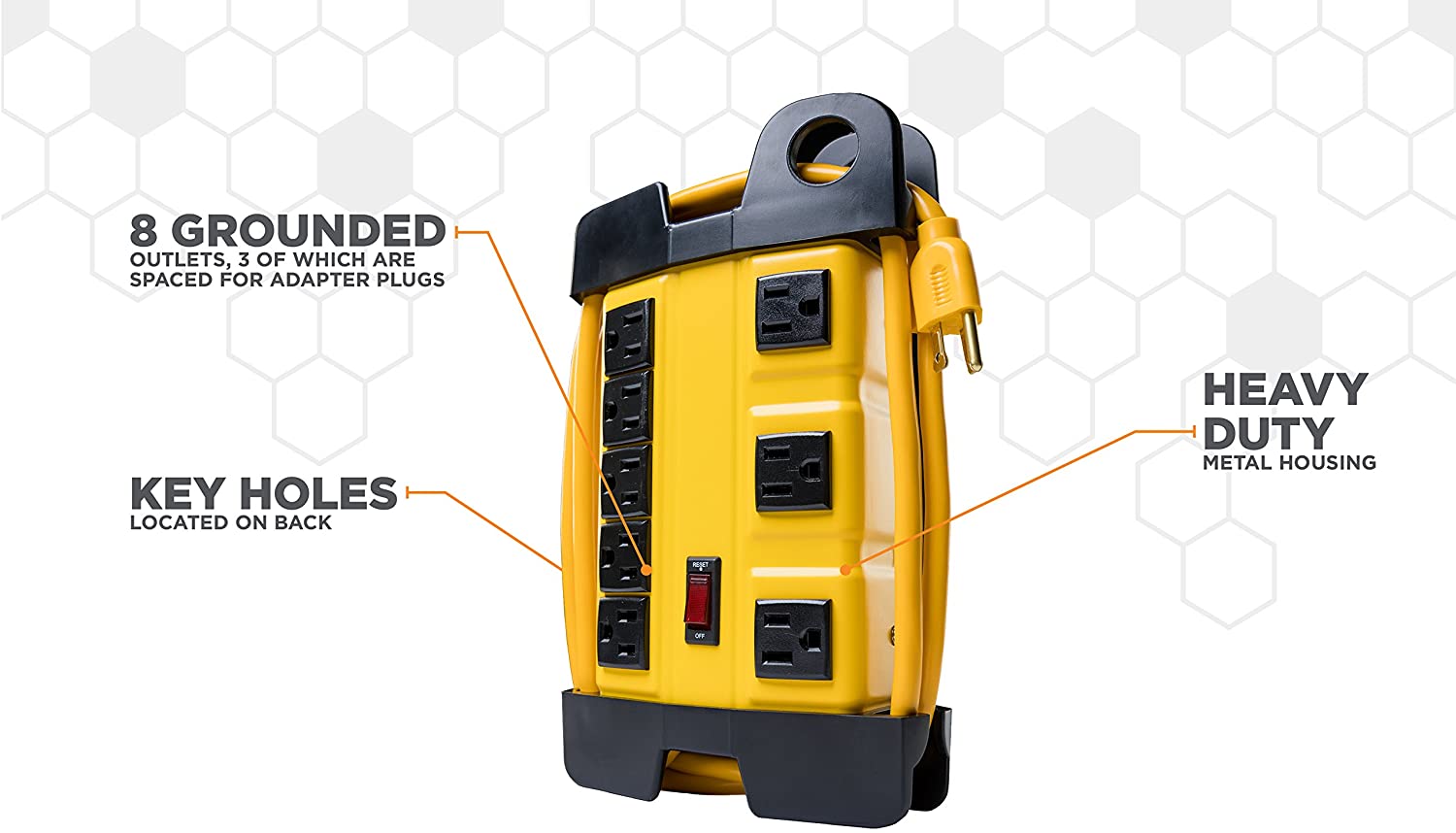 - 8 GROUNDED OUTLETS that allow you to power multiple appliance at once