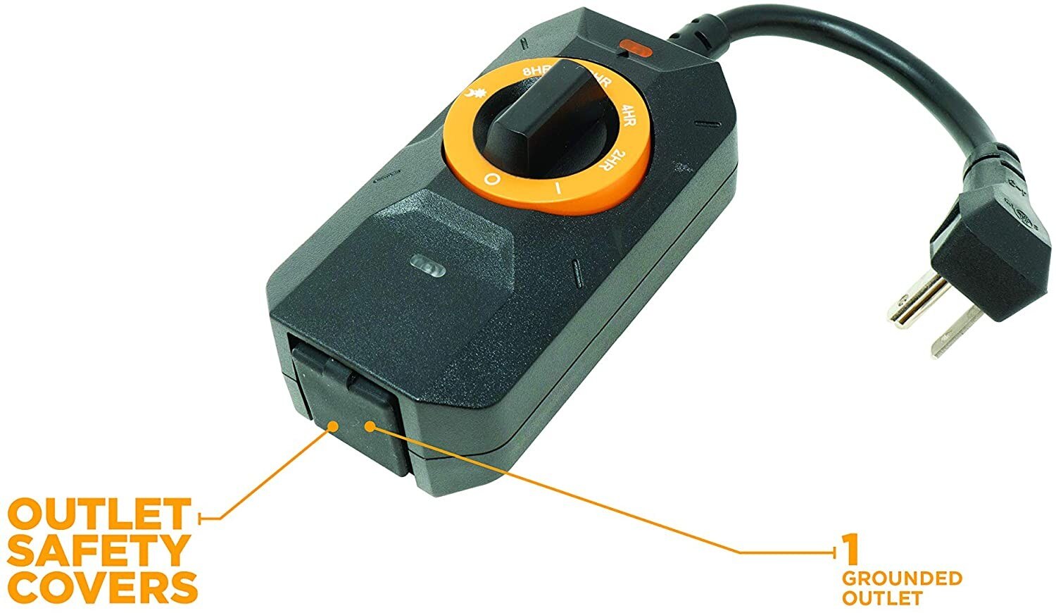 - ONE GROUNDED OUTLET WITH SAFETY COVER protects outlet from moisture, dust and debris when timer is not in use