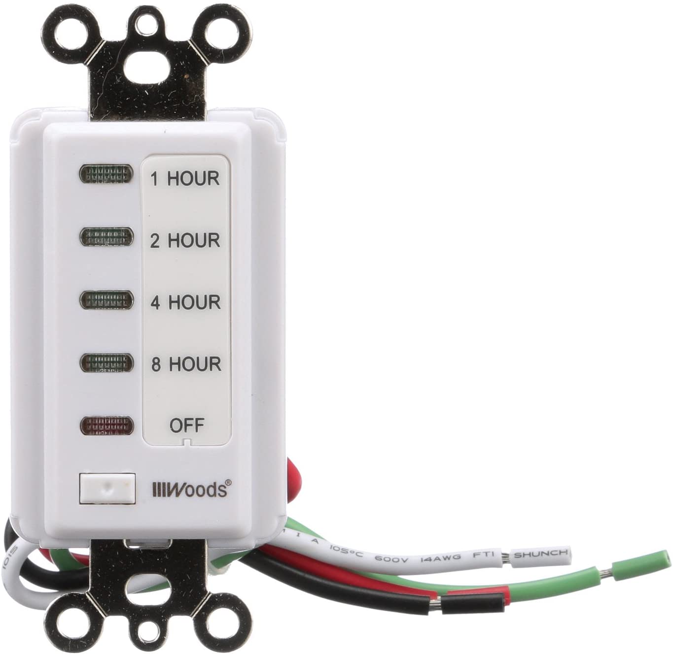 Woods 59013 In-Wall Timer, 120 V, 15 A, 2, 4, 8, 12 Hr Off Off, 8-Hour