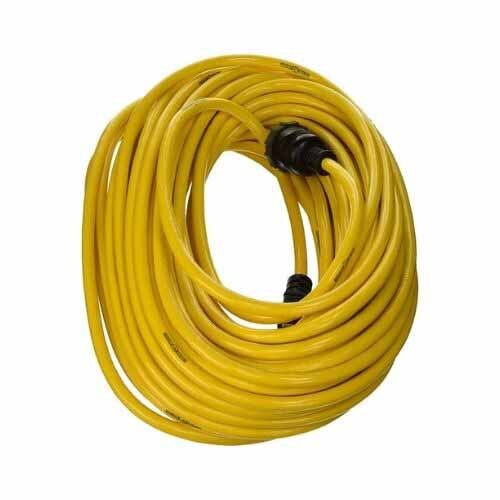 Yellow Jacket 12/3 Heavy-Duty 15-Amp Extension Cord features SJTW construction with PVC jacket that's weather and water resistant. Patented locking plugs keeps tools plugged-in. Extra heavy duty design works with nearly any tool. Suitable for residential, commercial construction, institutional and entertainment industries. Use for drills, hammer drills, circular saws, wet/dry vacs, lawn mowers, air compressors and other power tools, residential and commercial construction, institutional and entertainment industries. Reinforced blades for added durability, UL Listed.