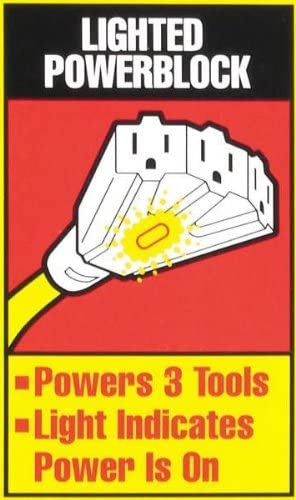 Yellow Jacket 2820 SJTW Extension Cord with 3-Outlet Lighted Power Block, 3 12 Awg Bare Conduct
